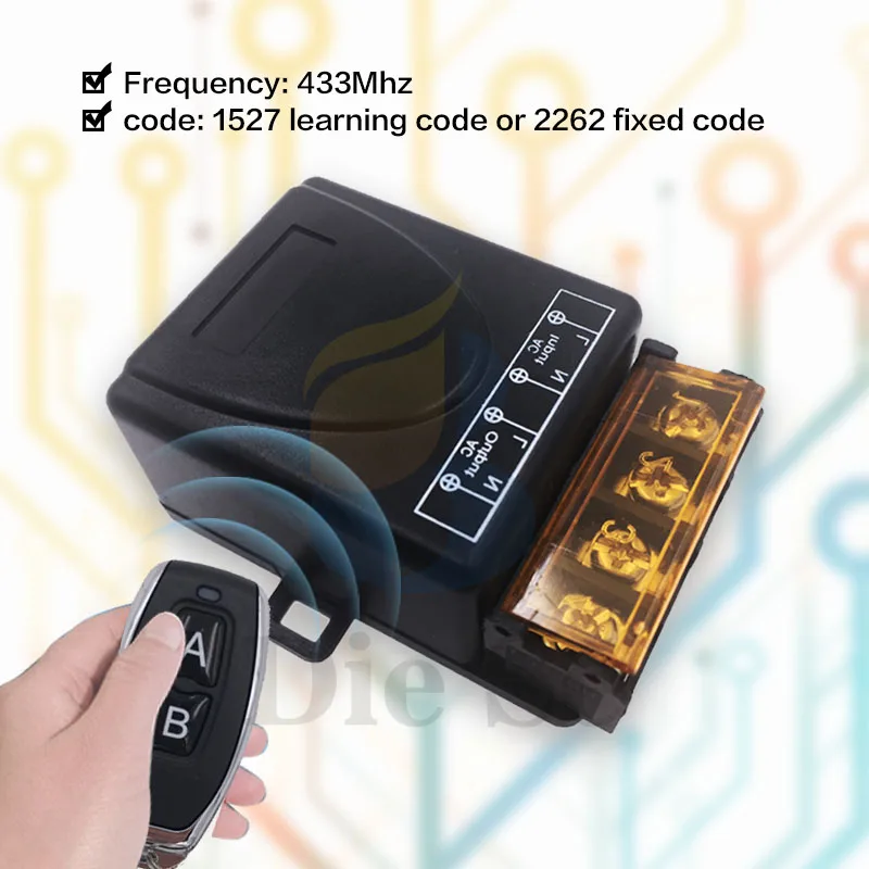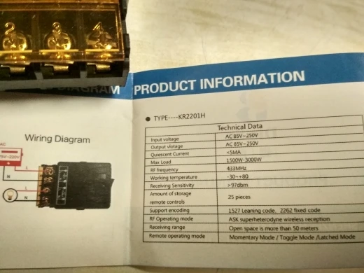 Заказ после оплаты доставлен через 55 дней. Подобного типа управляемое дистанционно реле приобретаю второй раз. Отличительная особенность, это 30А контакты. В комплекте также заказаны 3 пульта, каждый уже содержит установленную батарею. Всего предусмотрено три режима работы: 1. Включение только при удержании кнопки; 2. Триггерная коммутация при нажатии на кнопку; 3. Включение при нажатии на одну кнопку, отключение - на вторую. Инструкция по настройке находится на странице продавца данного товара. Отзыв положительный.