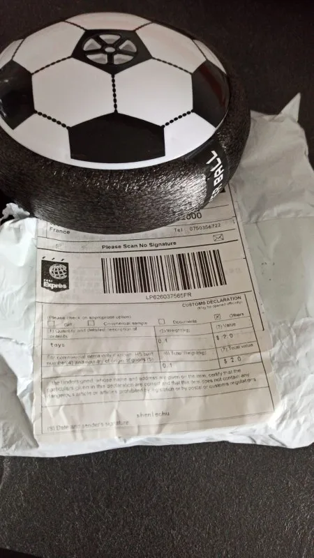 Он прибыл очень хорошо упакованным и очень быстрым. Я попробовал, и все идет очень хорошо, но дети еще не пробовали. Как футбольный мяч, он не работает, он хрупкий, это больше развлечение, чтобы играть дома