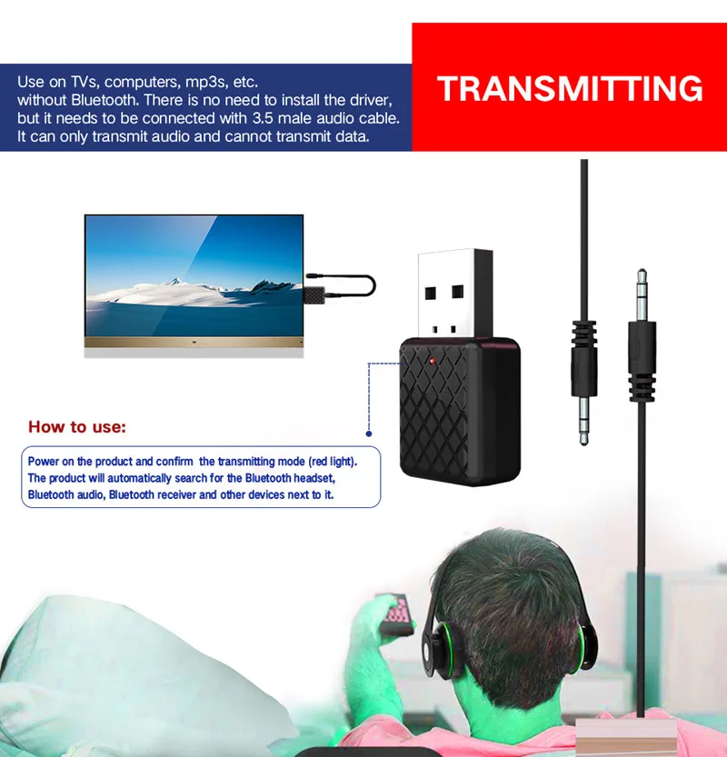 Bluetooth-передатчик 5,0 мм, стерео, беспроводной Bluetooth-адаптер для автомобиля, музыкальный Bluetooth-передатчик для телевизора