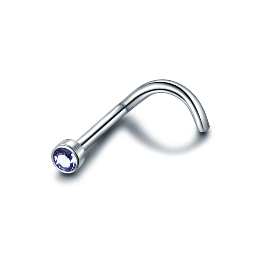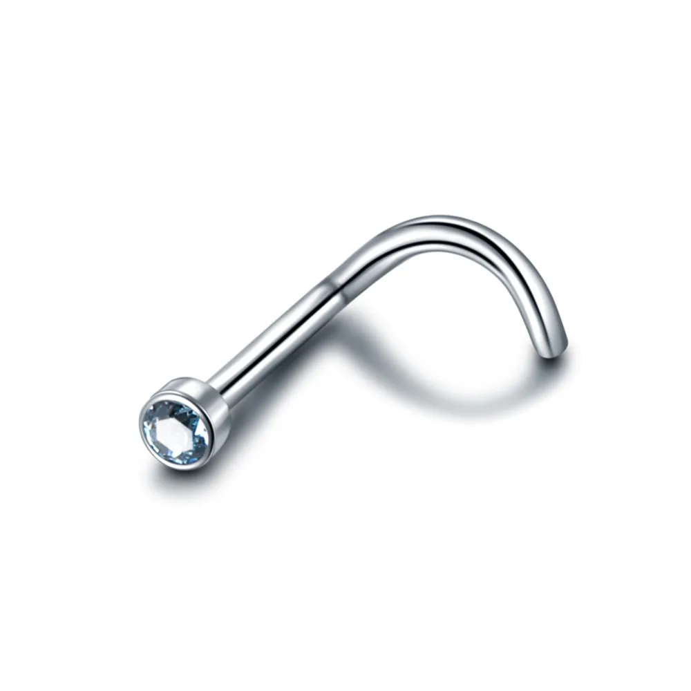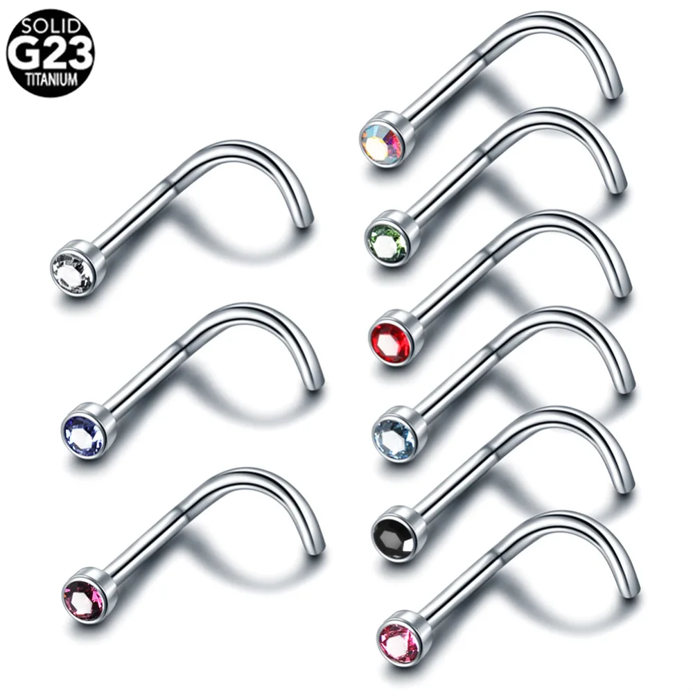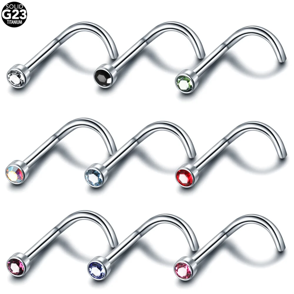 Кольцо для носа из титана G23 с кристаллом, для пирсинга носа, гвоздика с фианитами, Ювелирное Украшение для носа, винт для гвоздика с декором под драгоценный камень, 1 шт.