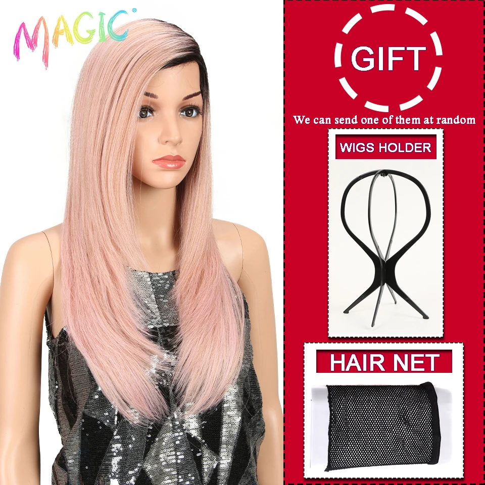 Волшебный прямой парик, кружевной парик, синтетический, розовый, светлый, красный, парик 24 дюйма для чернокожих женщин, высокотемпературные прямые волосы для косплея