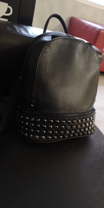 Рюкзак женский, из натуральной кожи, с заклепками