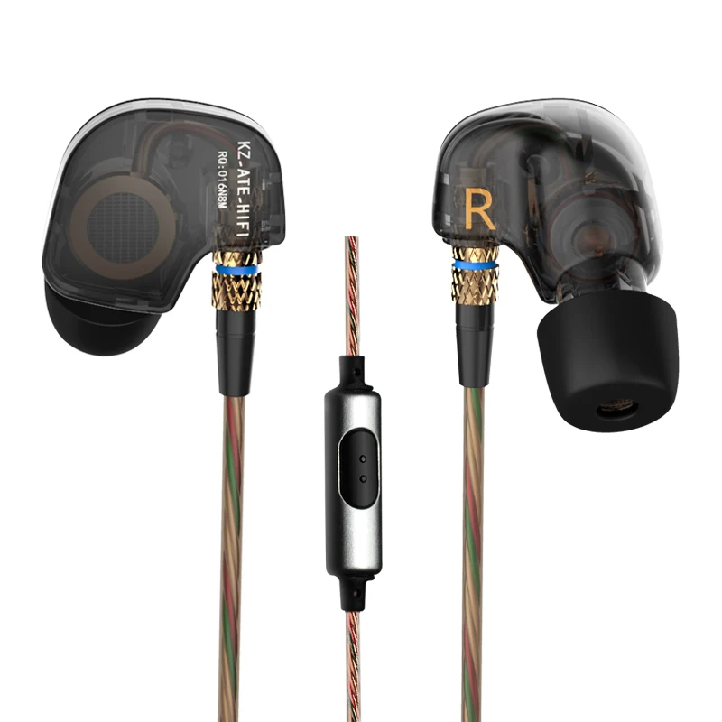 Оригинальные наушники-вкладыши KZ ATE 3,5 мм, Hi-Fi металлические стереонаушники, спортивные наушники с шумоизоляцией и микрофоном