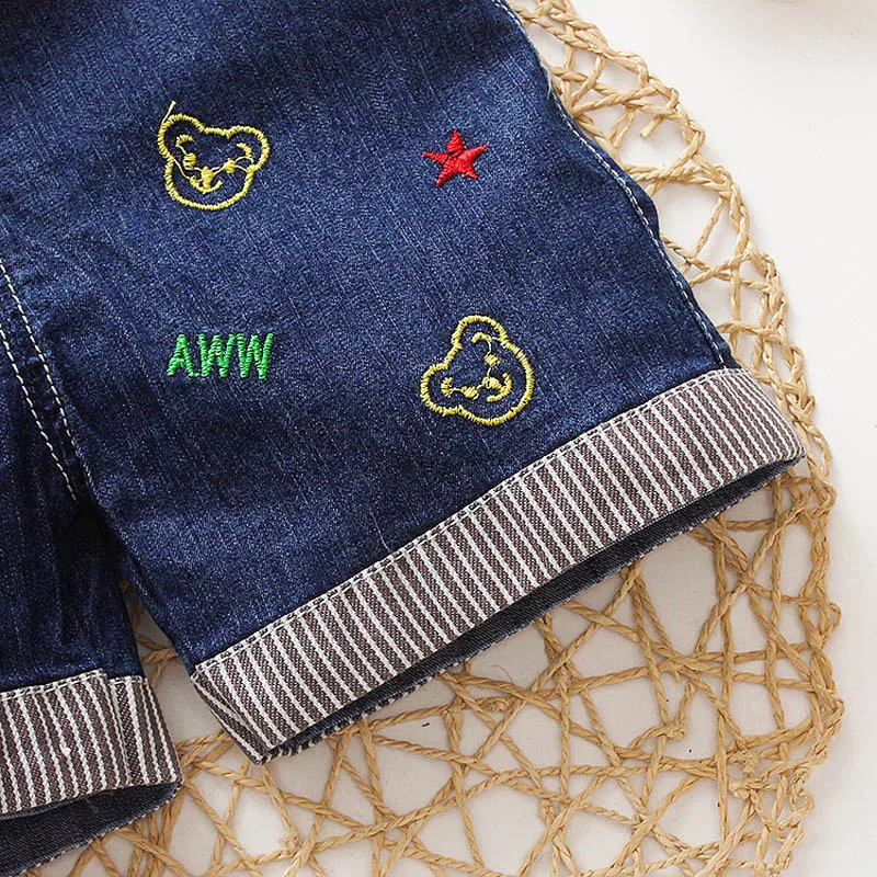Джинсовый комбинезон для мальчиков, тонкий, с мультяшным принтом