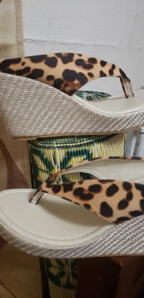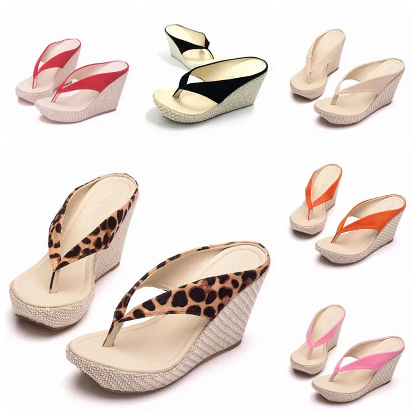 Женские пляжные сандалии на платформе, шлепанцы с кристаллами, высокий каблук, с леопардовым принтом, обувь на танкетке, лето