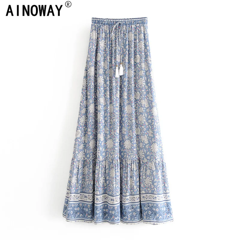 Винтажная шикарная Женская юбка в стиле хиппи с цветочным принтом и...