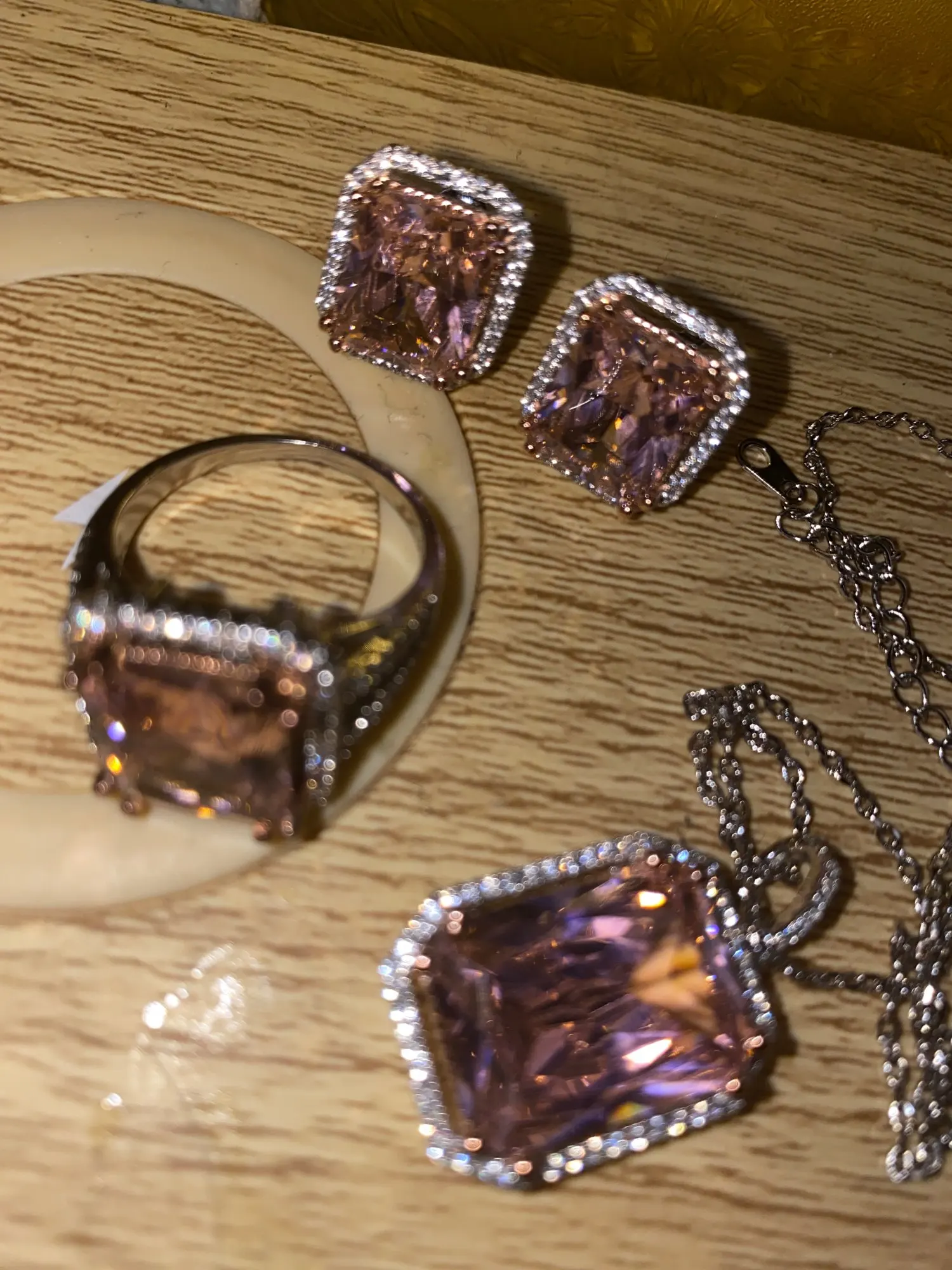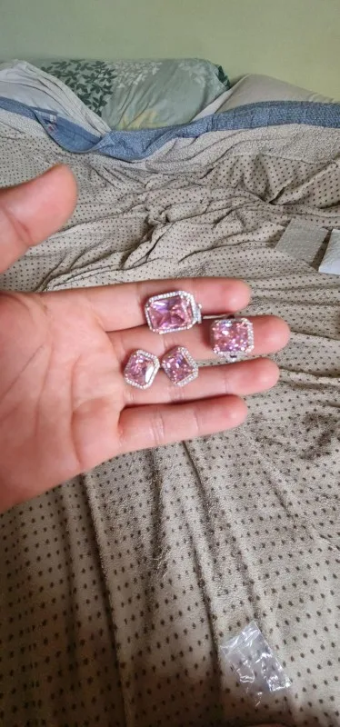 Комплект точно такой же, как на фото. Кольцо имеет уплотнение, удостоверяющее серебро 925 пробы. Продавец добавил небольшой подарок в пакет (кулон). Я очень доволен своей покупкой, и я обязательно куплю снова. Посылка была отправлена очень быстро и прибыла ко мне через 2 недели.
