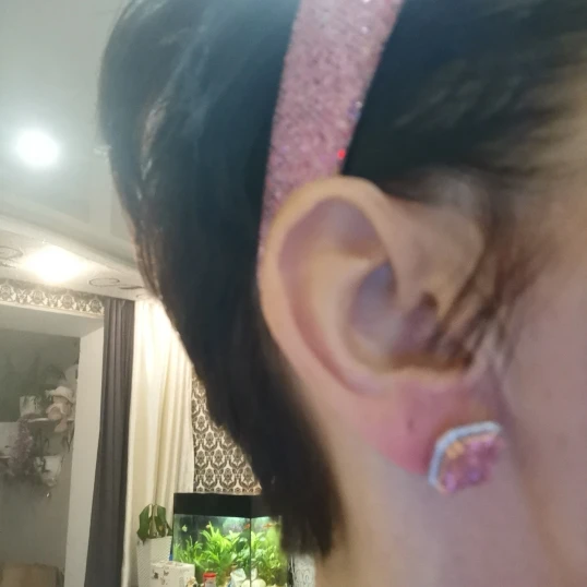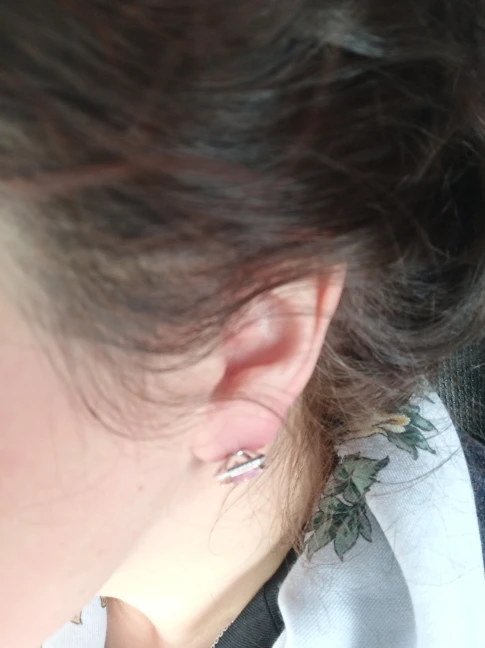 Серьги красивые, но замок сделан по середине, из-за этого центр тяжести не там, где надо и серёжка висит на ухе камнем в землю, переворачивается вместе с мочкой. Ходить так конечно невозможно, это ужас.
