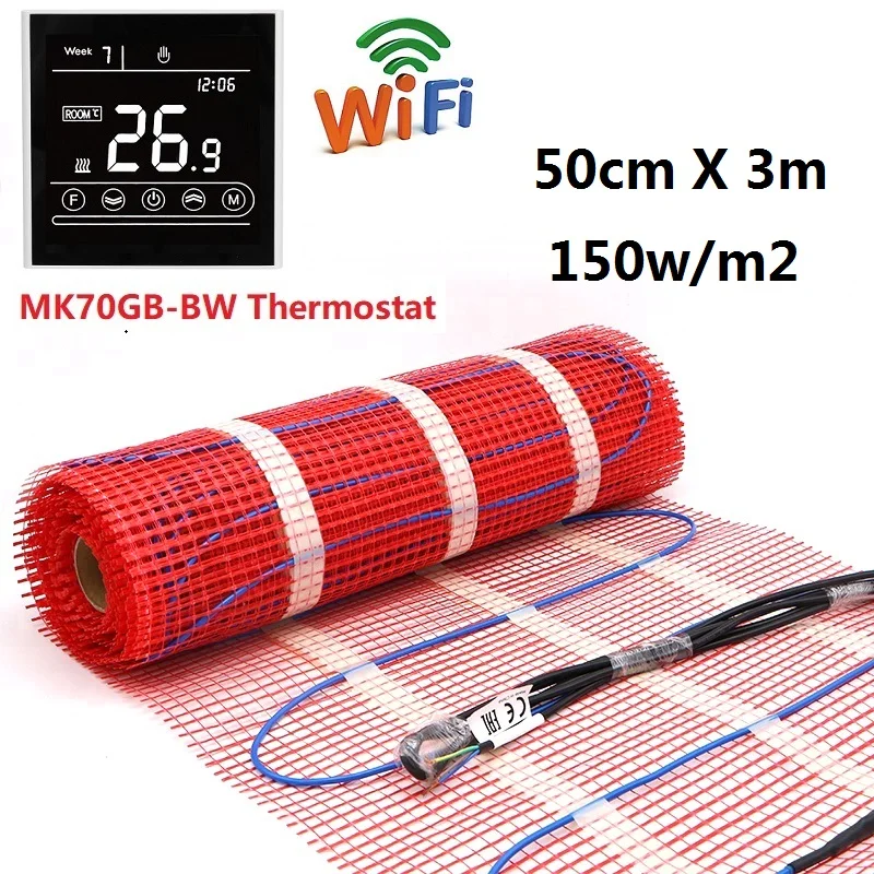 1.5m2 Электрический напольный нагревательный коврик 150 Втм2 50cmX3m под плиткой теплый коврик с WiFi термостатом