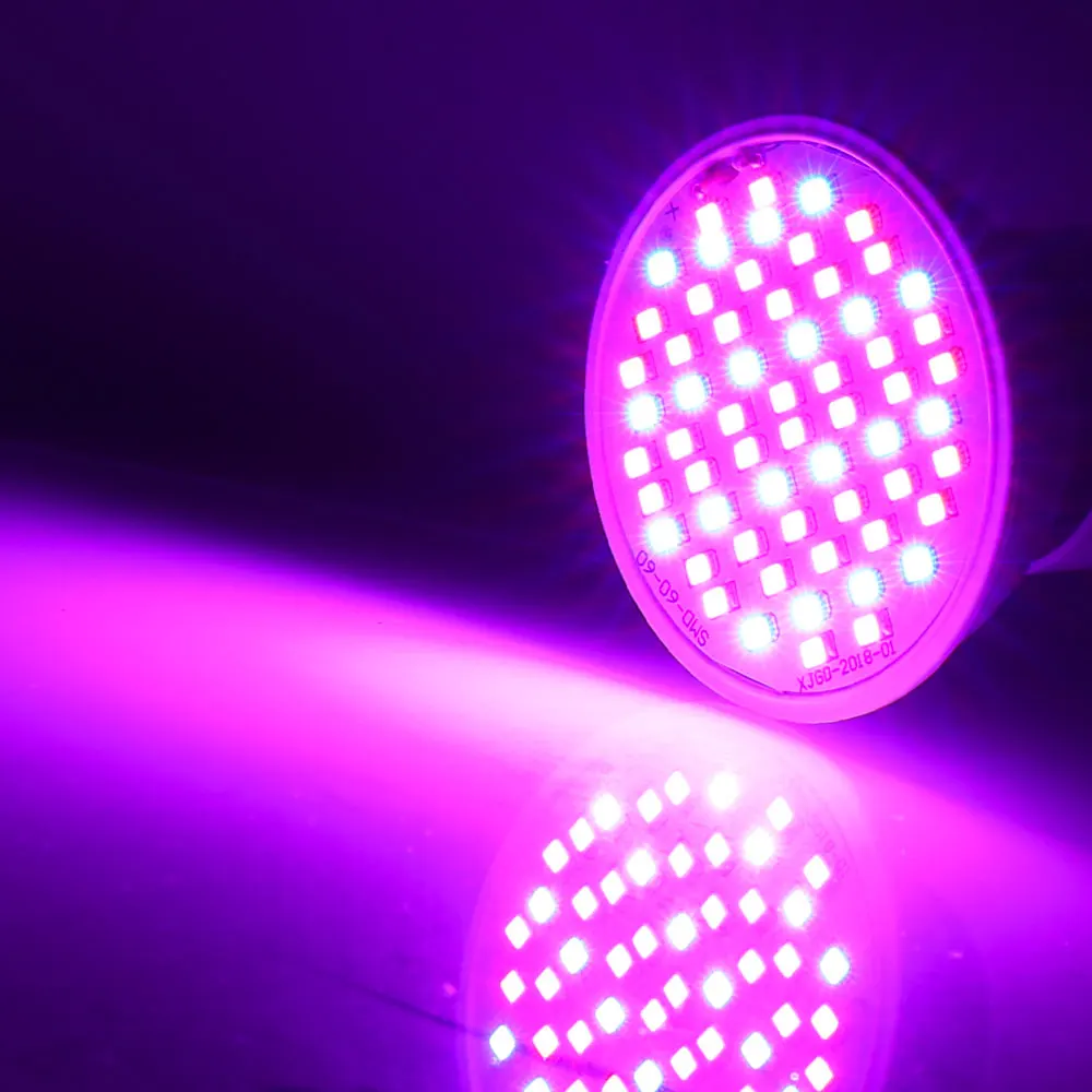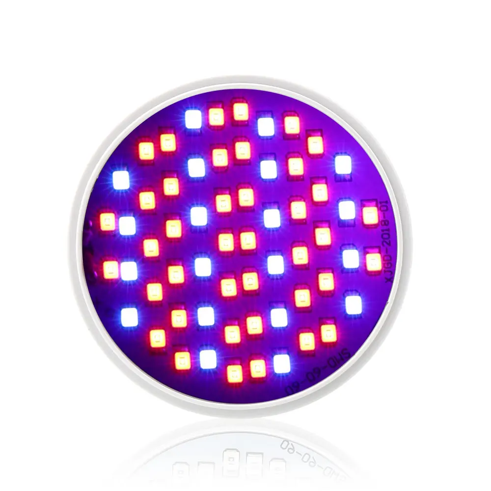 Тип светильника: светодиодный светильник для выращивания растений Тип цоколя: E27 Мощность: 5 Вт Размер: 64(D)mmx60(H) мм Количество светодиодов: 60 шт. Материал: алюминий Угол луча: 160 градусов Светодиодный Цвет: 40 красный и 20 синий Требования к напряжению: AC85 ~ 265 в Вес (г): 60 г Срок службы: >50000 часов Низкий нагрев, отсутствие ультрафиолетового излучения или ИК-светильник Низкое энергопотребление Без ртути Парниковое освещение Комнатные растения растут