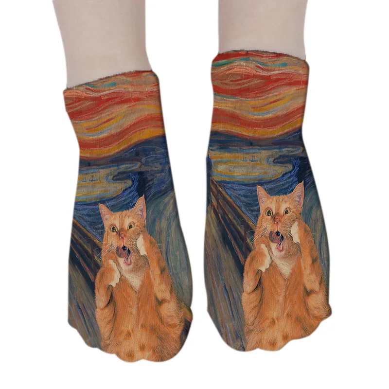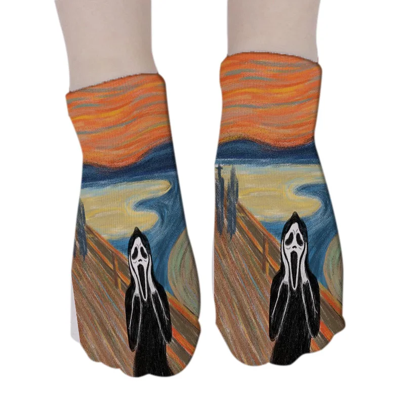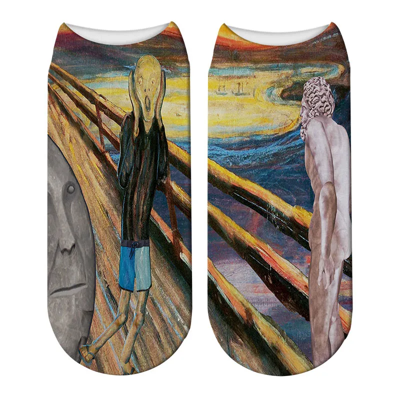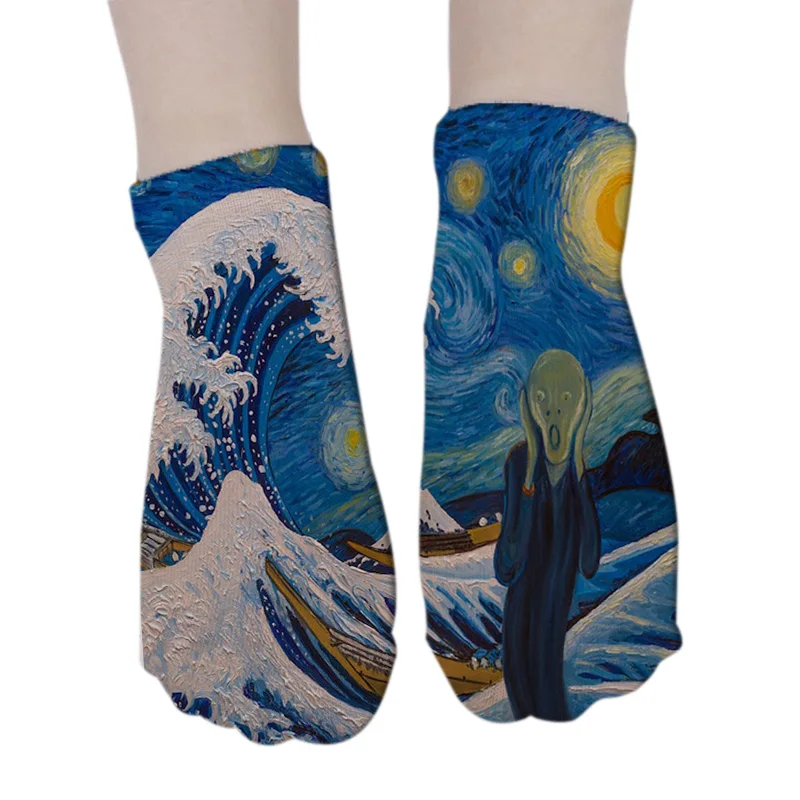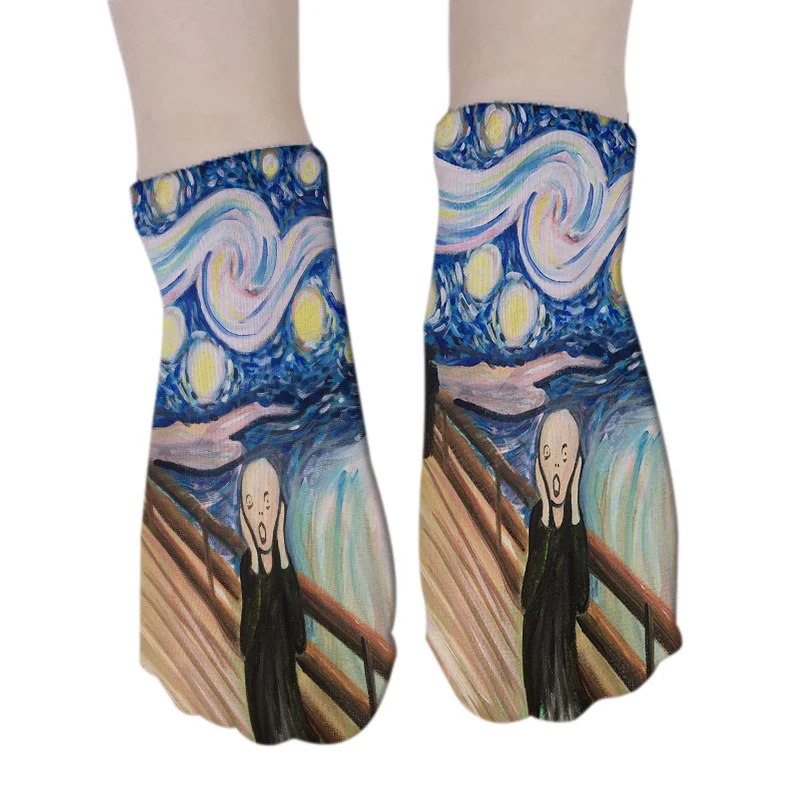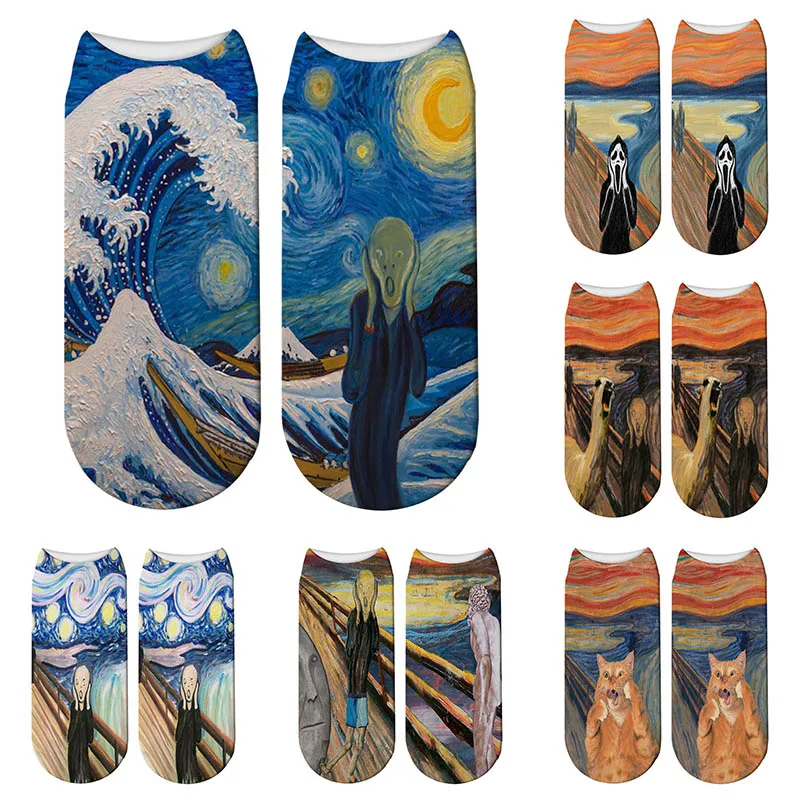 Новые женские хлопковые носки с 3D принтом, носки с художественным рисунком Ван Гога, Классические носки Харадзюку в стиле ретро с рисунком маслом, Женские Смешные Веселые короткие носки