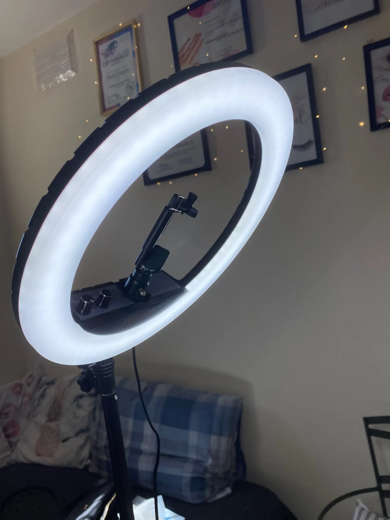Отвращение, если вы ищете кольцевой светильник, который удерживает во время, это не то, что вы, возможно, должны быть, что мой был просто дефектным, но он имеет много дефектов, таких как переключатель, но также держит его штатив, он не твердый, мне нужно взять штатив, который является лучшим качеством. Продавец очень быстро реагирует, но он абсолютно ищет вещи, чтобы сказать о споре, в то время как моя позиция действительно неисправна