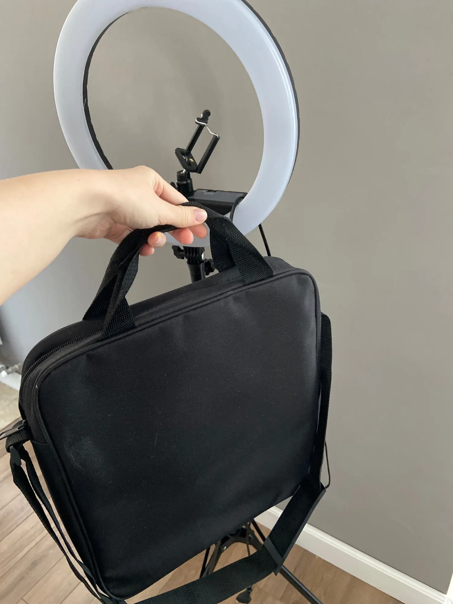 Лампа хорошего качества , удобно регулируется яркость и тон свечения , все крепится надёжно , штатив устойчив. Есть удобный чехол для хранения и переноски лампы , что собственно видно на картинке в описании товара . Пульт управления ещё не проверял . Доставили до квартиры сдэком через неделю , после оформления заказа. Всем довольны , кроме упаковки товара . Не было никакой дополнительной защиты коробки или самой лампы . Хотя ни товар , ни коробка не пострадали , все таки стоит упаковывать надёжнее.