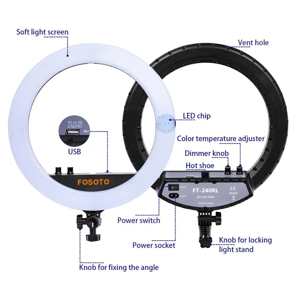 Fosoto FT-240RL 14-дюймовое фотографическое Освещение 3200-5600K кольцевая лампа для камеры фотостудии телефона светодиодная штатив с дистанционным управлением