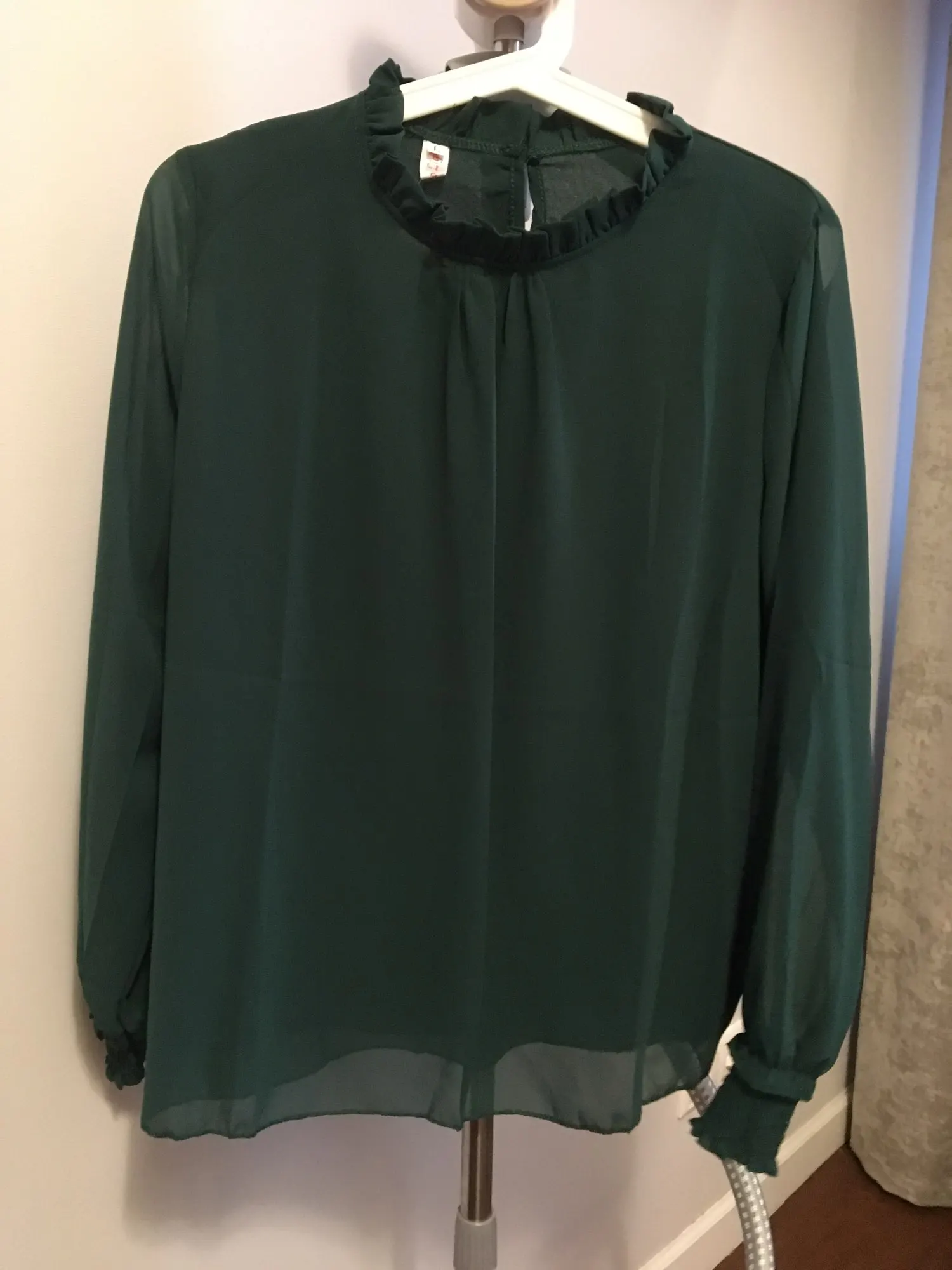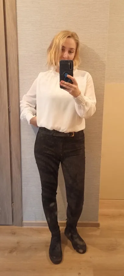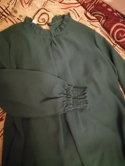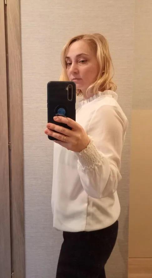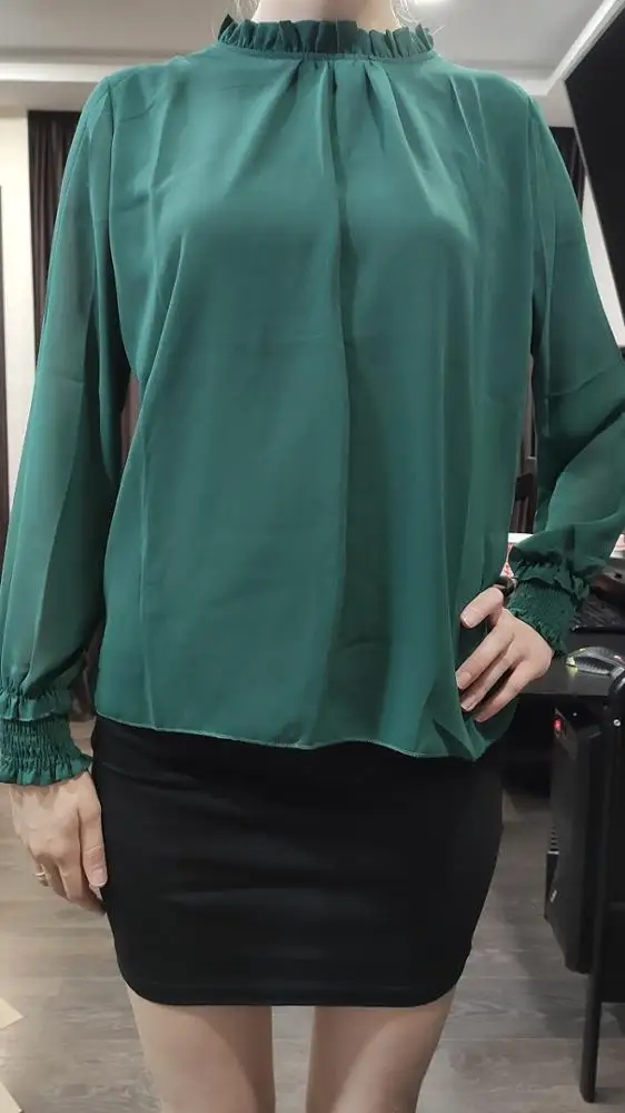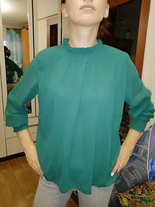 блузка шифоновая, хорошо сшитая, на свой размер М взяла L и идеально подошла, не в обтяжку. Рукава не просвечиваются как на фото, но мне тоже так понравилось. Спасибо продавцу
