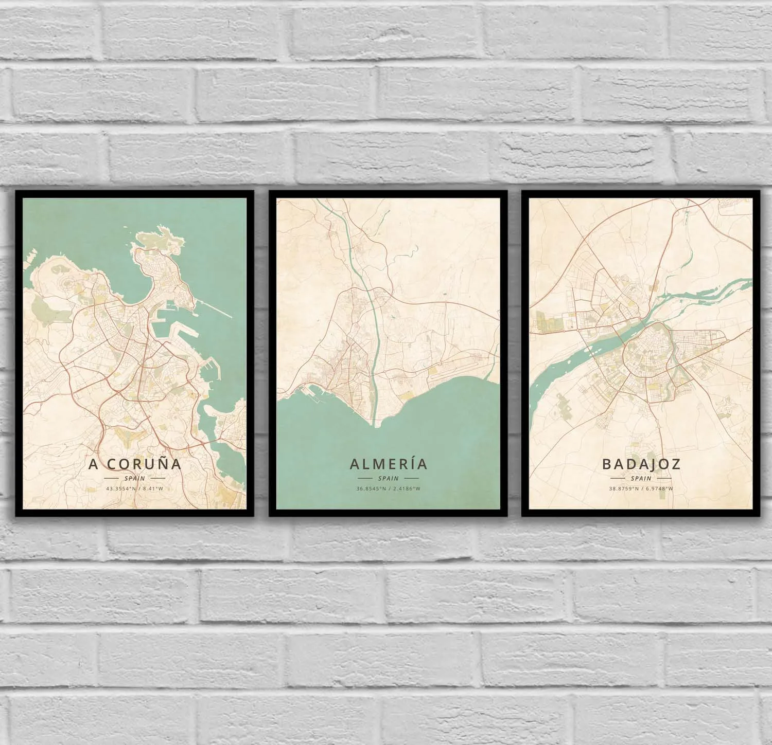 A Coruna Almeria Badajoz, Барселона, Бильбао, брюшный Джон, гирона, Гранада, Huelva, Ибица, Лас-Пальмас, Леон, Мадрид, Постер Испании