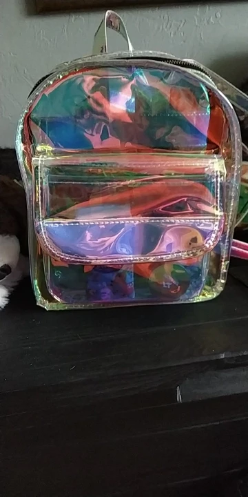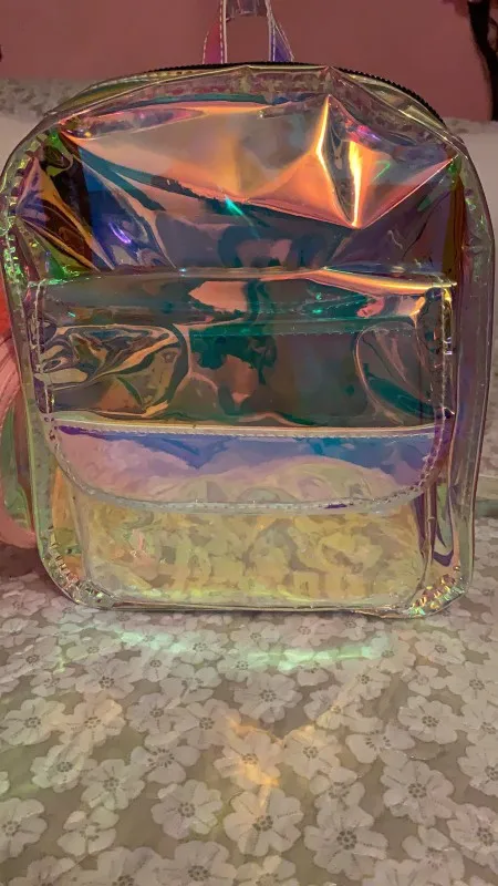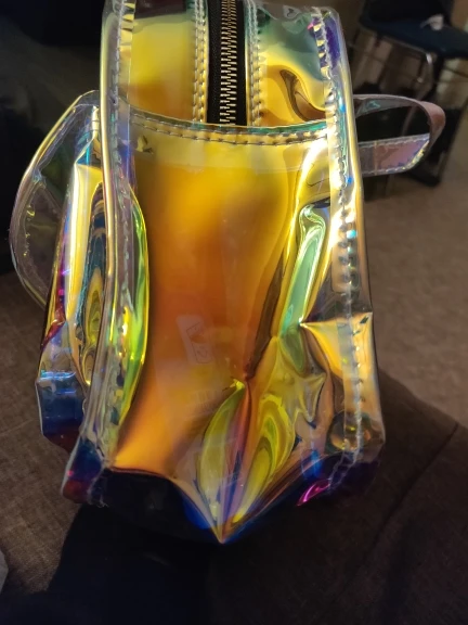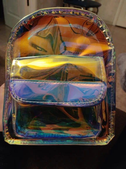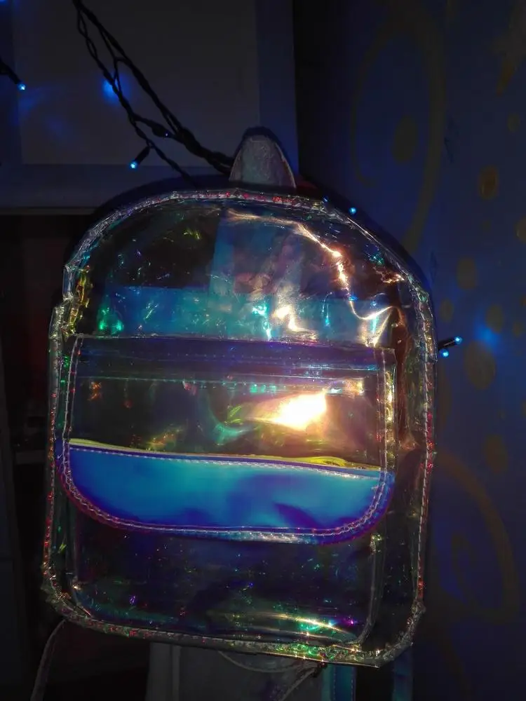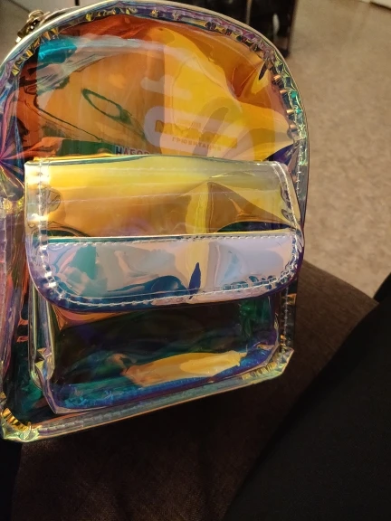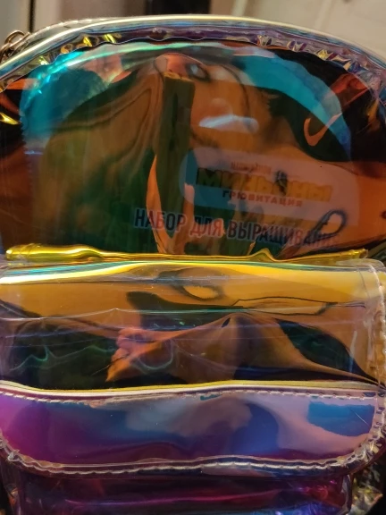 Заказали 27.01, получили в Пятёрочке 08.02. Рюкзачок прикольный! Из-за своей зеркальности не с каждого ракурса видно, что находится внутри. тем более, если не стоишь на месте, а перемещаешься. Видно, если приглядываться. На солнышке, думаю, со всех сторон будет отражать. В тени наверное будет видно. Но мне он все равно нравится!) Рекомендую!