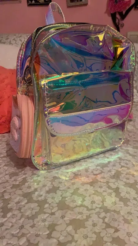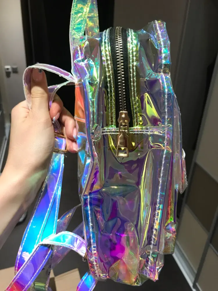 Дорожные мини-сумки для женщин, серебристый рюкзак с лазерным рисунком, сумка на плечо из искусственной кожи с голографическим рисунком, школьные ранцы для девочек-подростков