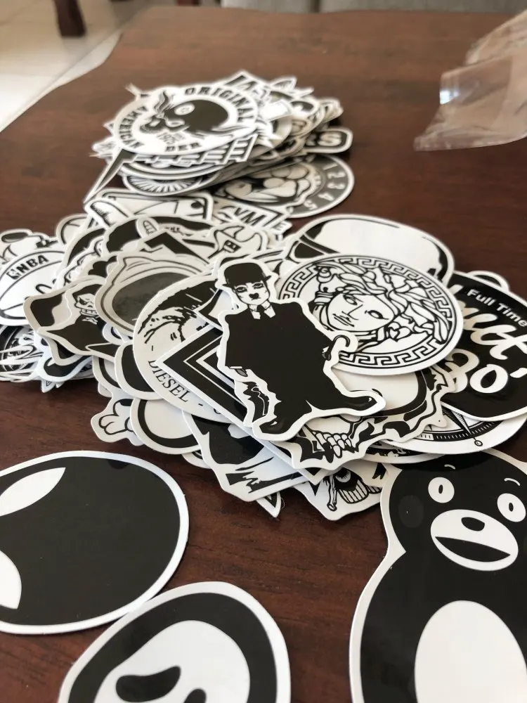 Большой выбор черно-белых наклеек. Разные возрастные диапазоны с более взрослыми тематиками, но идеально подходят для того, что мне нужно. Качественная печать и наклейки хорошо прилипают