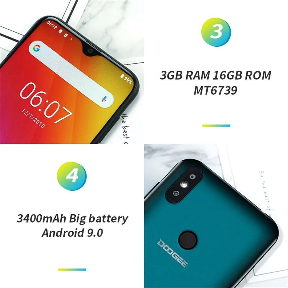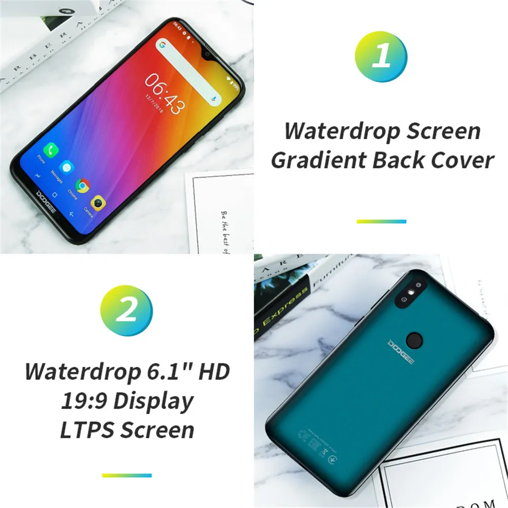 Экран водопадаГрадиентная задняя крышка6,1 "HD3 + 16 Гб3400 мАчAndroid 9,0
