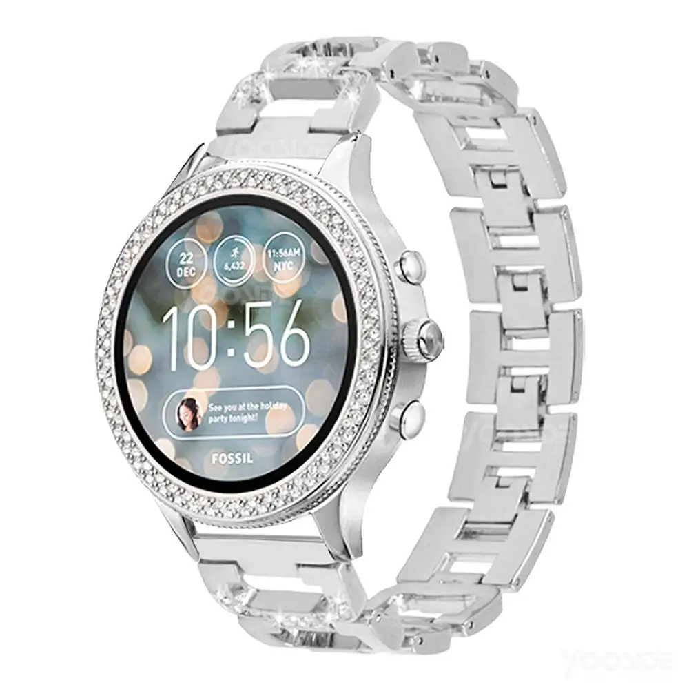 YOOSIDE 18 мм быстросъемный металлический ремешок для часов из нержавеющей стали с блестящими кристаллами для Fossil Q Venture Gen3Gen4 HRTicWatch C2