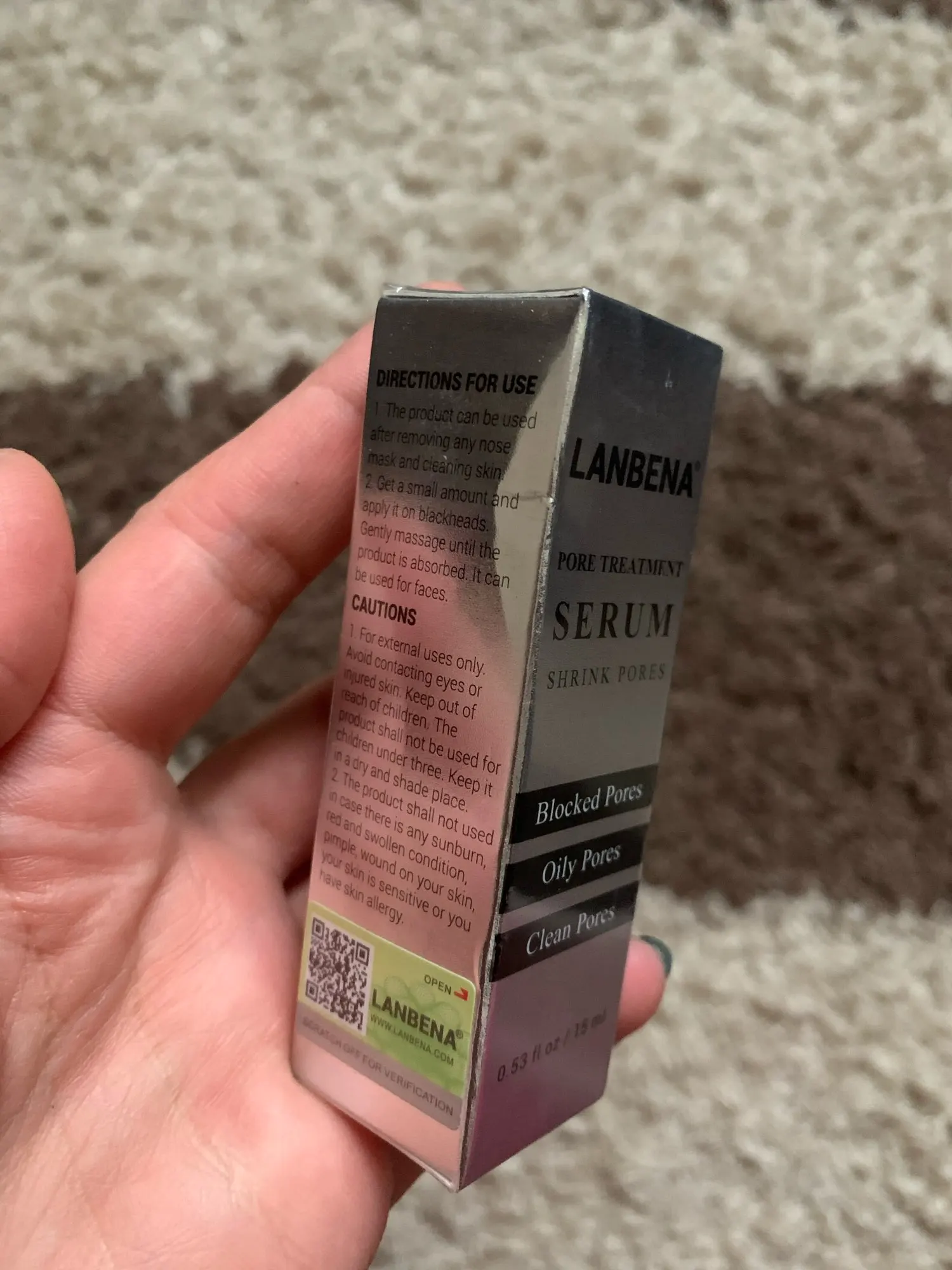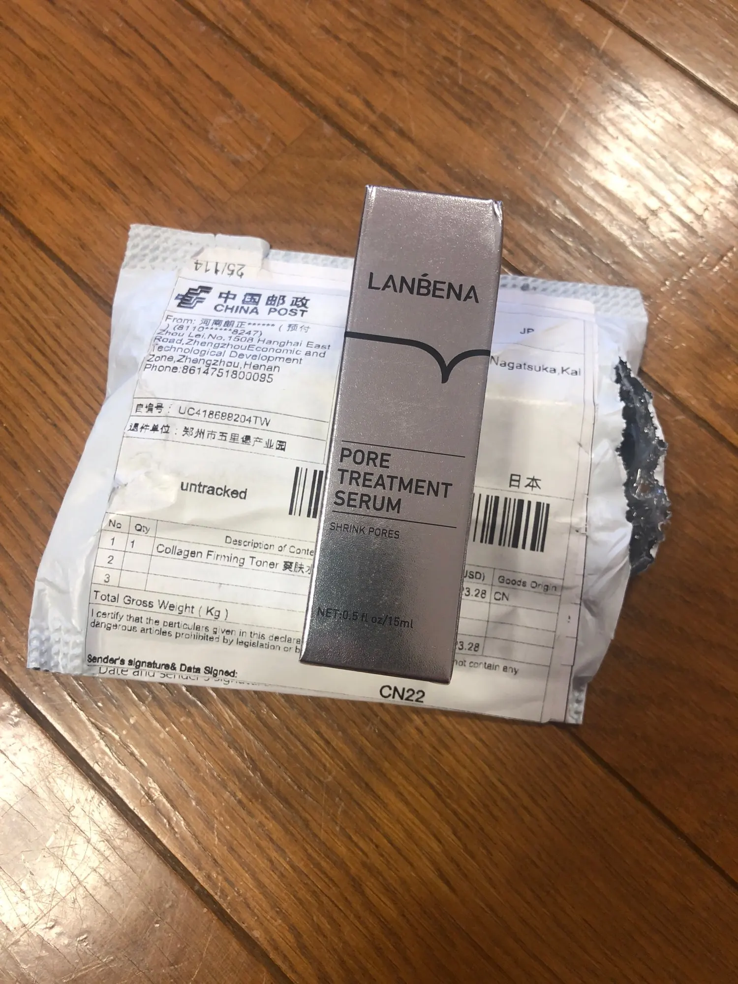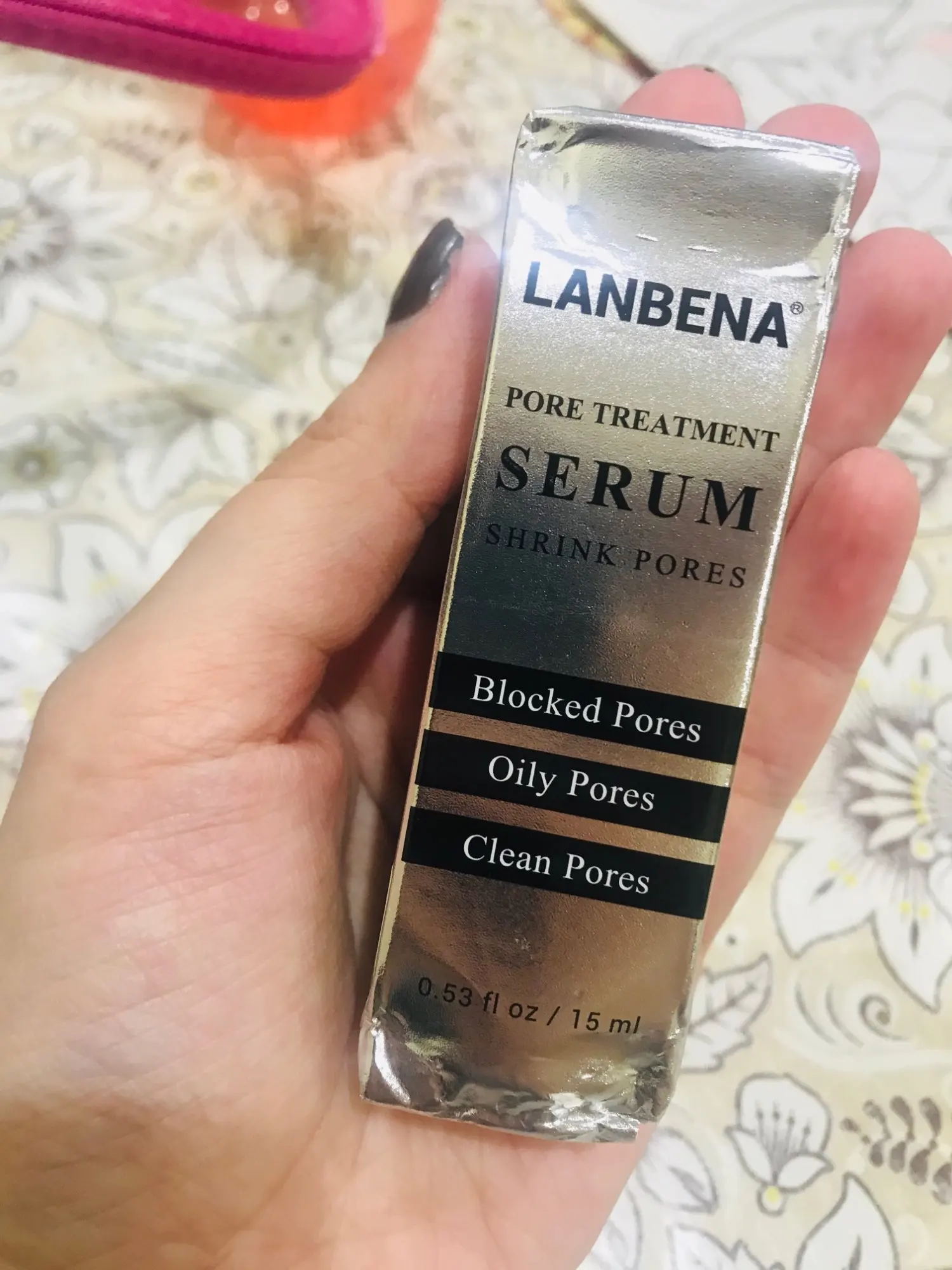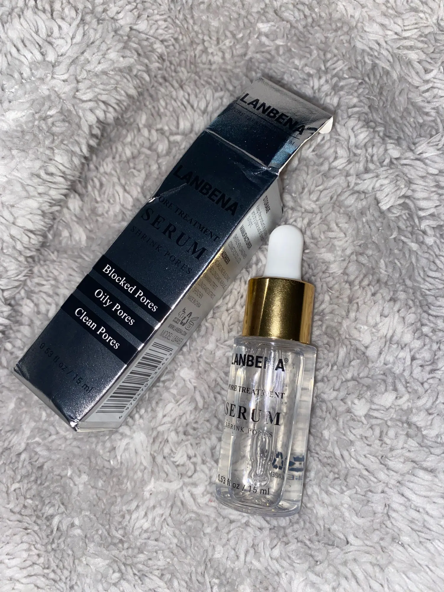 Товар пришёл где-то за 2 месяца в Минск, продавец общительный, трек отслеживался. Сыворотка в плёнке, срок годности ок, на упаковке код для проверки подлинности, нашлось, все в порядке, пишет, что не подделка. Сам товар: непонятный запах. Эффект 1 из 5. Ничего особо не произошло после использования. Хотя предварительно использовала маску этого же поставщика для удаления чёрных точек. Нос немного стягивает, но неприятных ощущений нет.