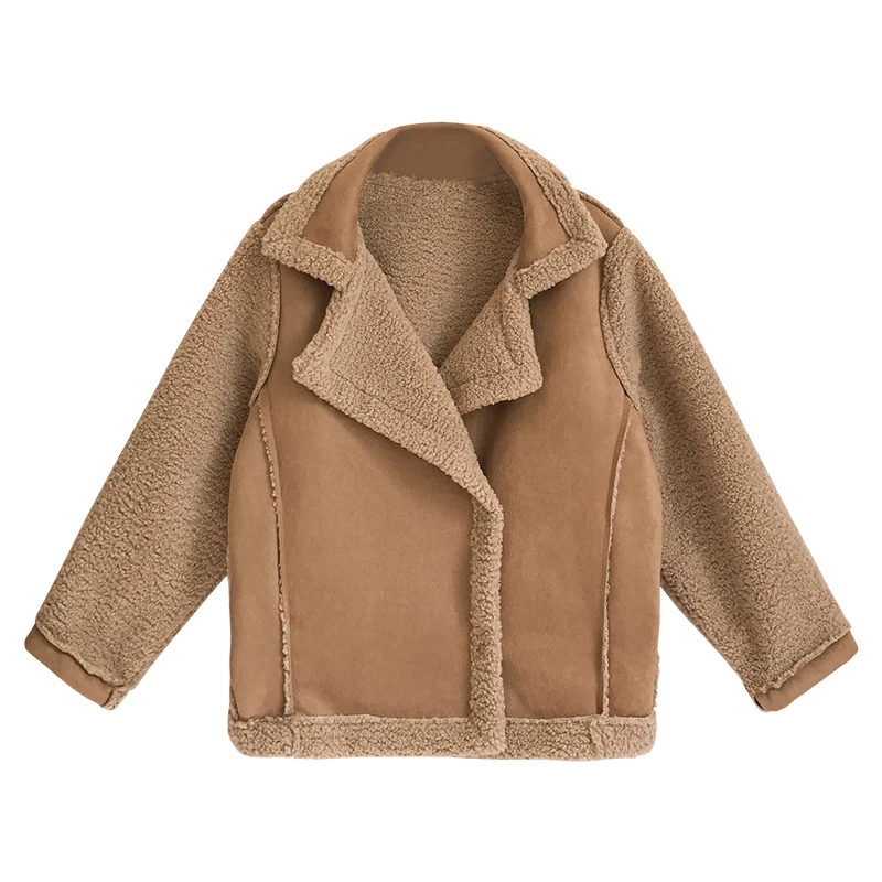 Замшевое пальто из меха ягненка, Женская мода из искусственного меха, кожаная мотоциклетная куртка, Женская свободная Толстая зимняя куртка, Женское пальто