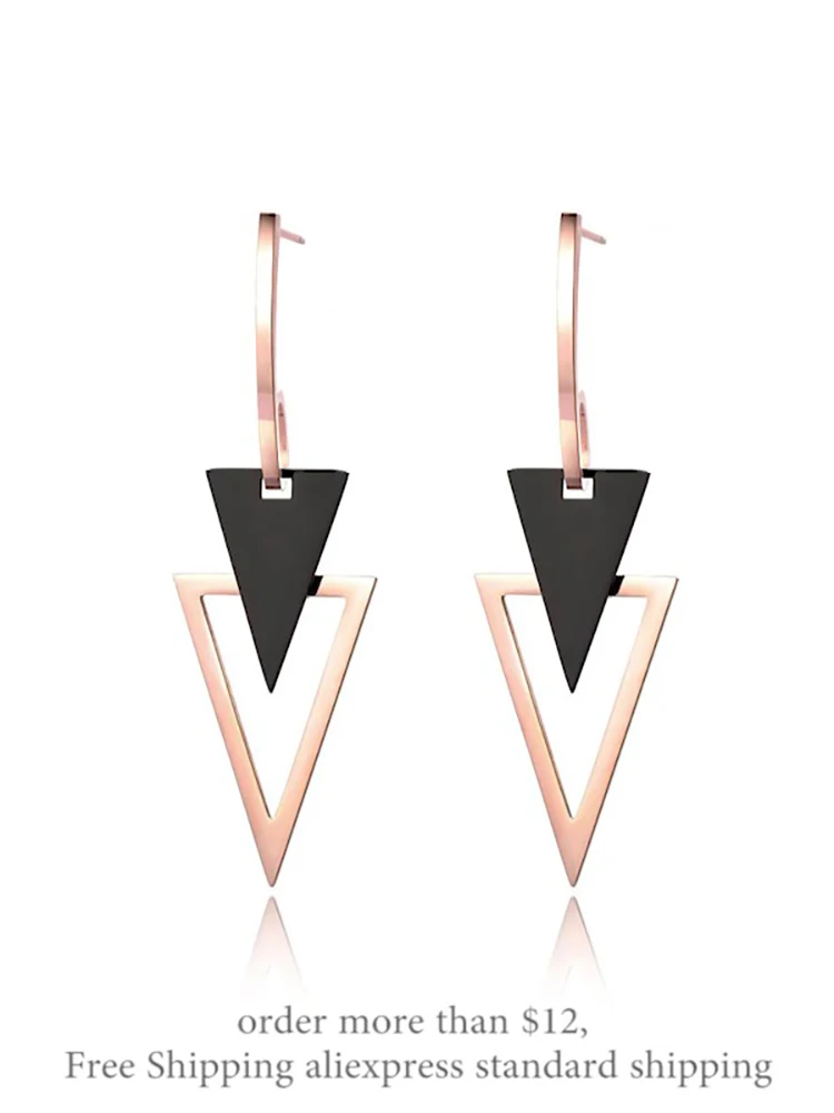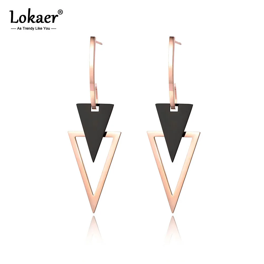 Женские серьги-подвески Lokaer, из нержавеющей стали, с двумя треугольниками, ювелирные украшения, розовые, E19036, золотой, геометрической формы