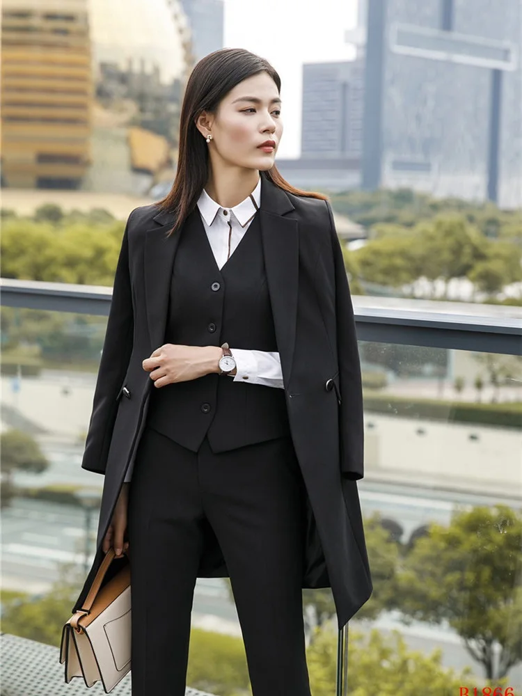 Модные высококачественные женские блейзеры из ткани весна-осень 2019 костюмы униформа дизайнерские Деловые женские офисные брюки длинные пальто