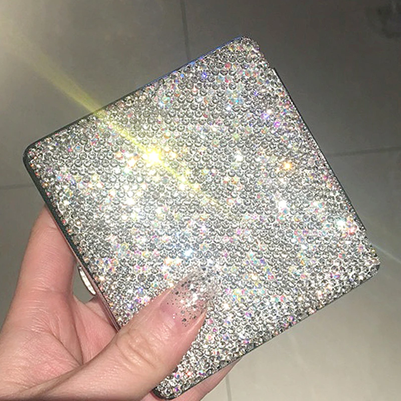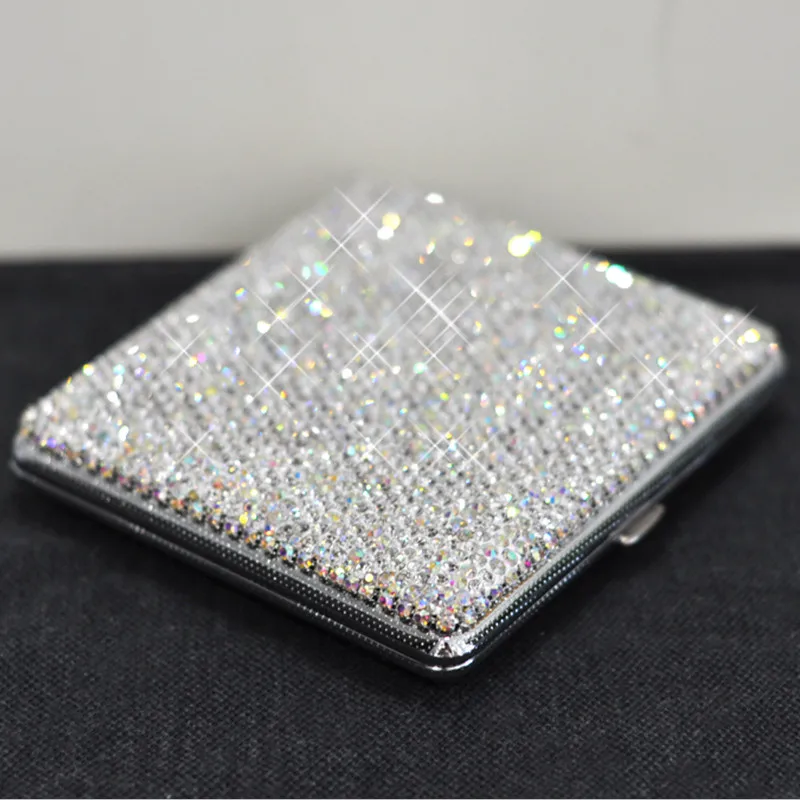 Блестящий Кристалл бриллиант Ms 20 палочек чехол для сигарет тонкий металлический портативный двухсторонний Стразы коробка для хранения курения для девушки подарок