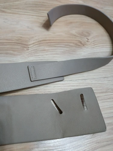 Хороший ремень. Мягкий и не красится, это было для меня важно, так как ношу его теперь с белой курткой. Но немного расстроило, что он сшит из двух частей, если талия очень узкая и хотите носить его с чем-то тонким, то может и не затянуться. Доставка в Пермь чуть больше 2 недель.