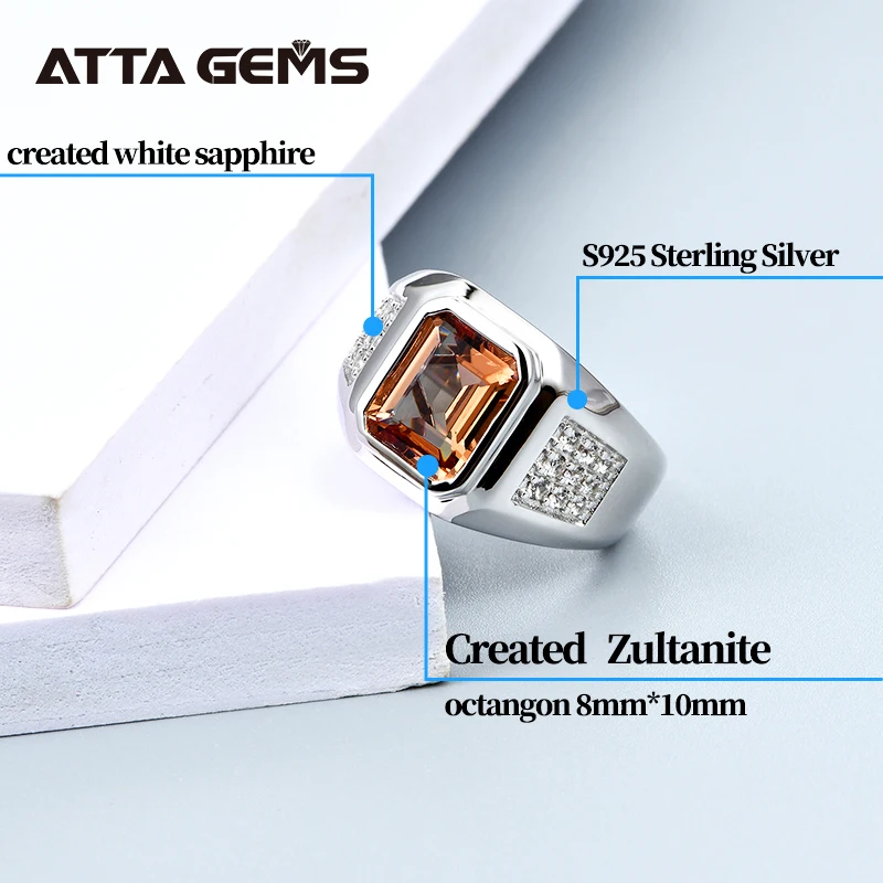 Мужские серебряные кольца с зултанитом, твердые обручальные кольца из стерлингового серебра с драгоценным камнем 5 карат