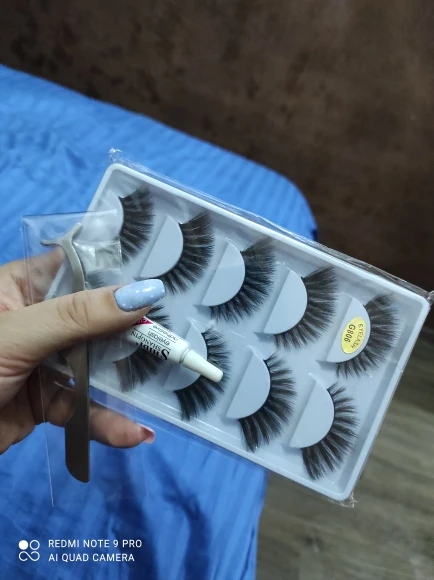 Ресницы были отличного качества и совпадают с аппликаторами, но клей был настолько мал и, вероятно, только прослужит 5 или 7 раз, но цена отличная