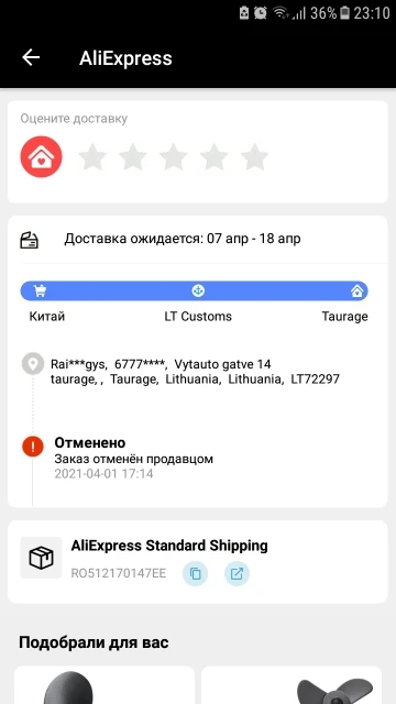 Страна: RU Color: S 3Vanes Доставка: Standard Shipping 15.04.2021