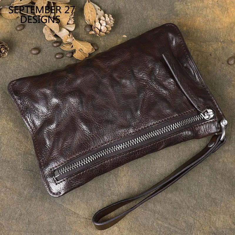 Длинные кошельки для мужчин, винтажный роскошный клатч из натуральной кожи для телефона, бумажник из 100% воловьей кожи в стиле ретро для кредитных карт, ручной работы