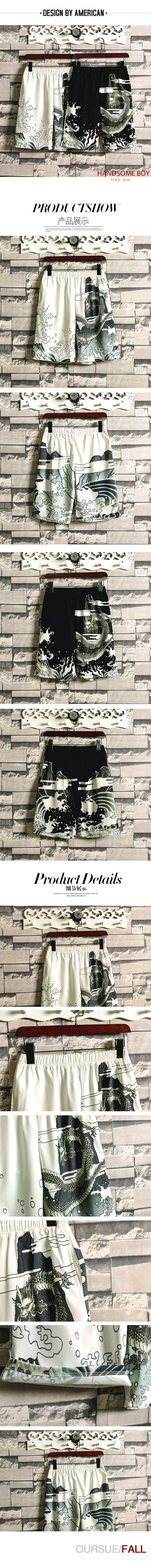 Шорты мужские #2611 летние в японском стиле с 3d принтом тонкие быстросохнущие, свободные, уличная одежда, винтажные, повседневные тонкие пляжные