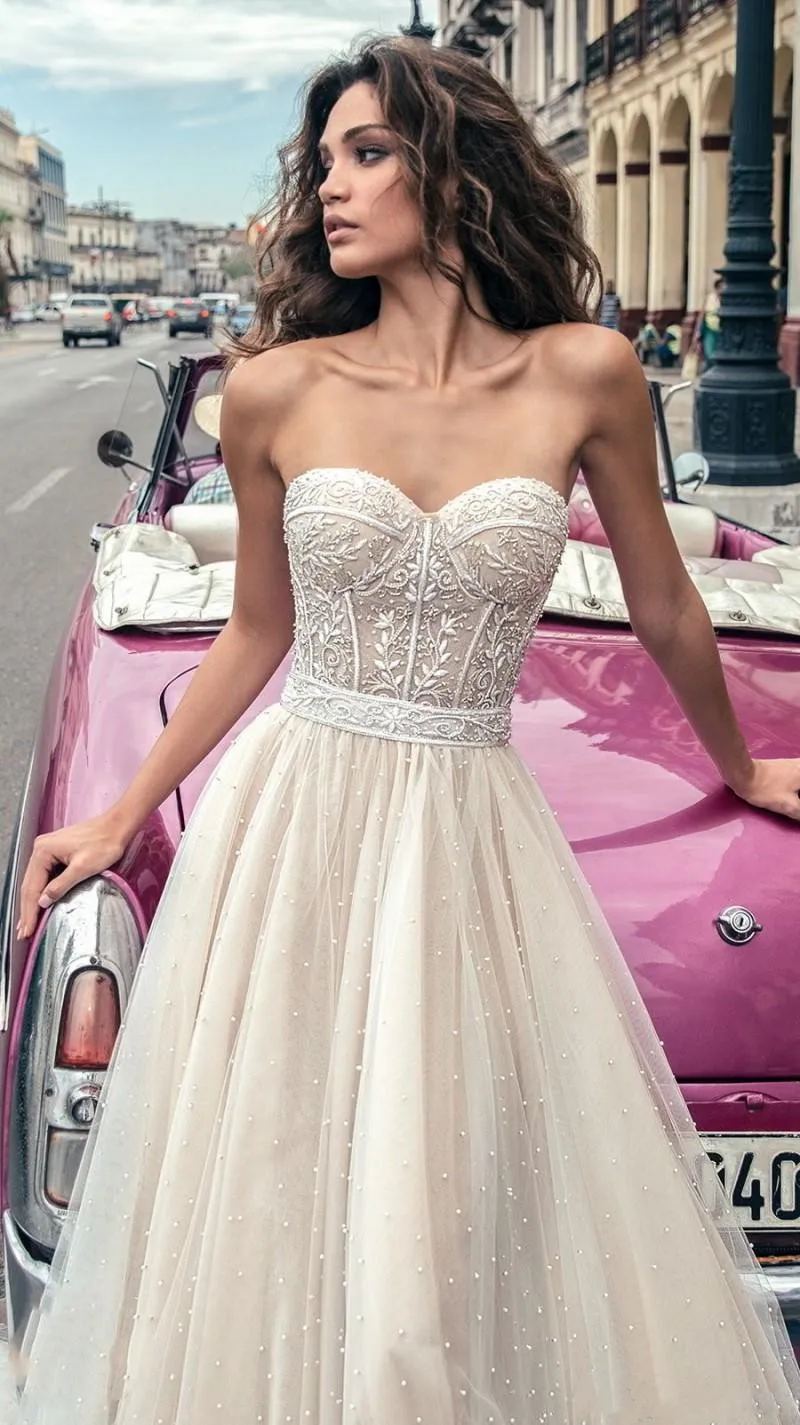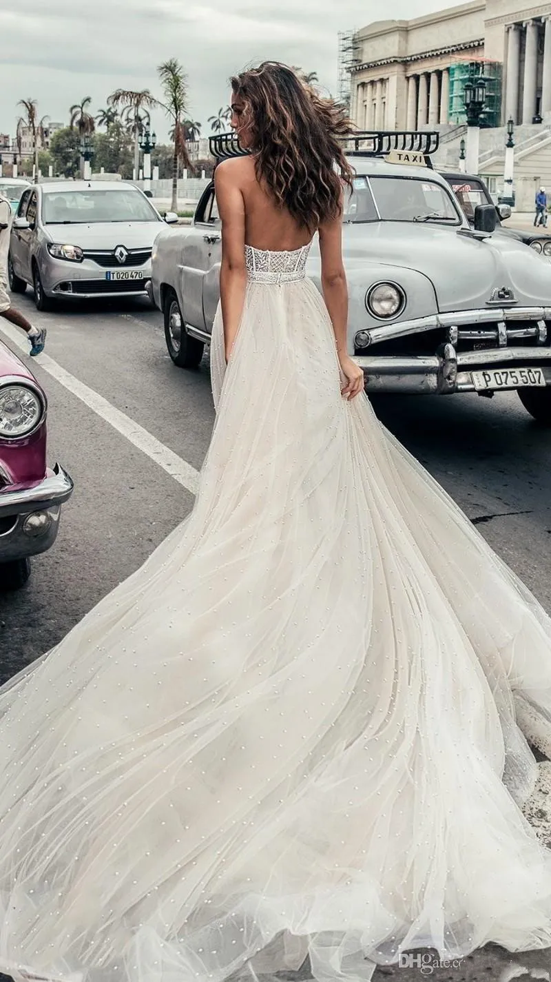 Изысканное свадебное платье es без бретелек, цельное Тюлевое свадеб...