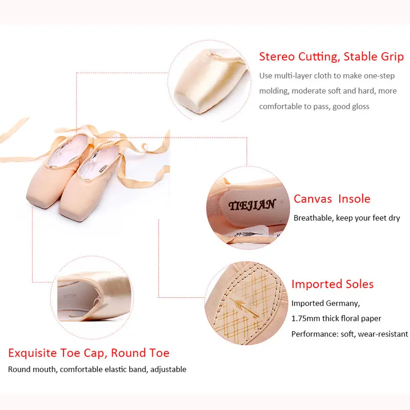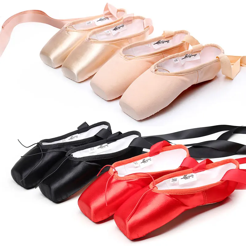 Туфли-пуанты, бандажные, женские, профессиональные, парусиновыеатласные, танцевальные, с силиконовыми накладками на пальцы ног, девочка танец балет