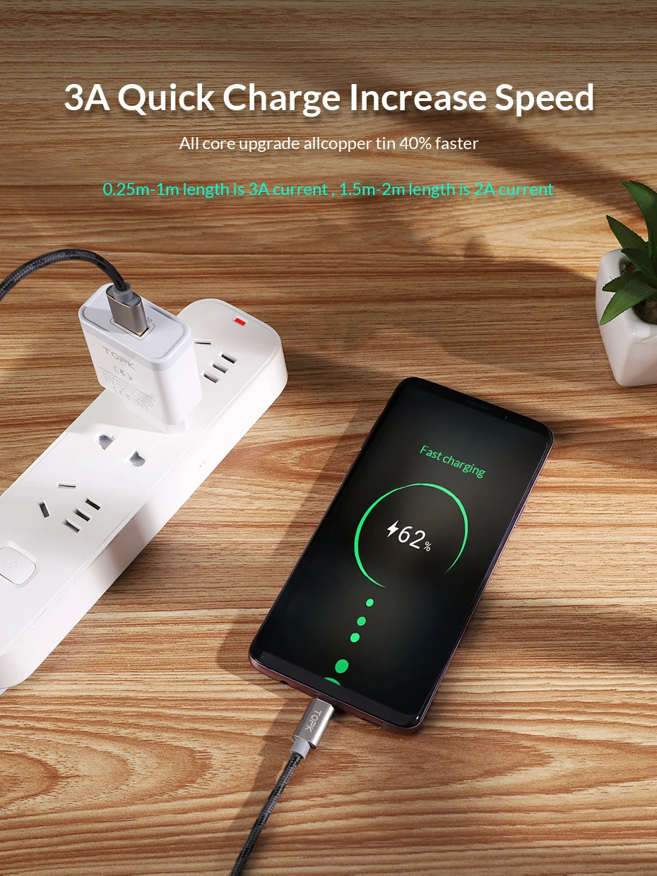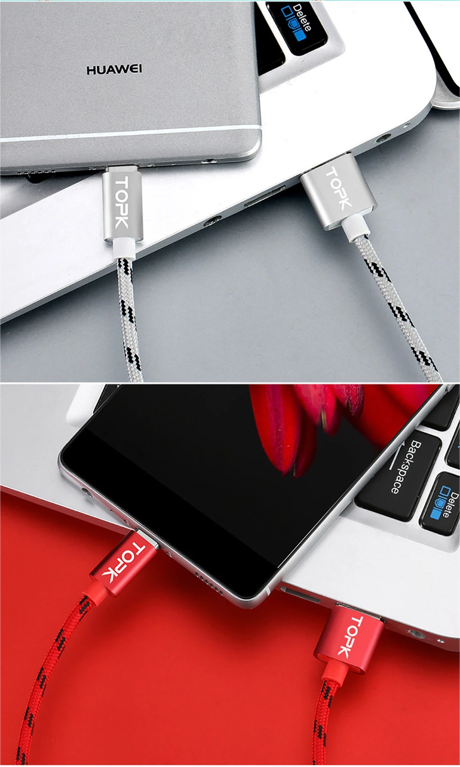 Адаптер TOPK USB-Type C, нейлоновый, длина от 0.25м до 2м, цвет в ассортименте.