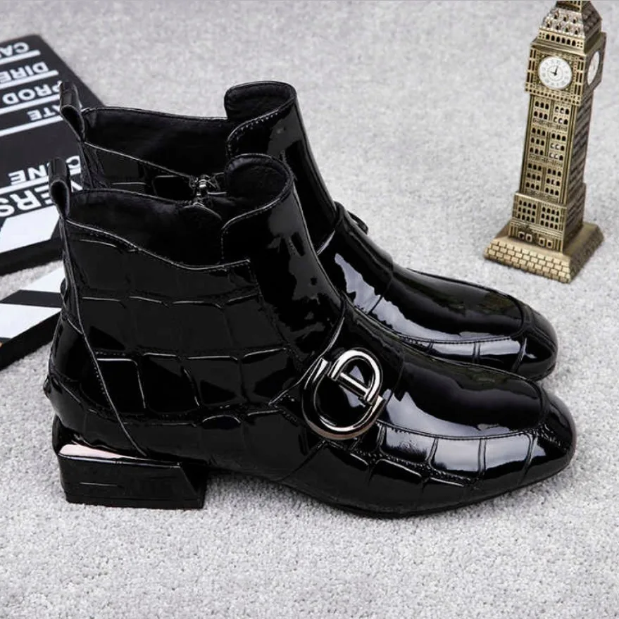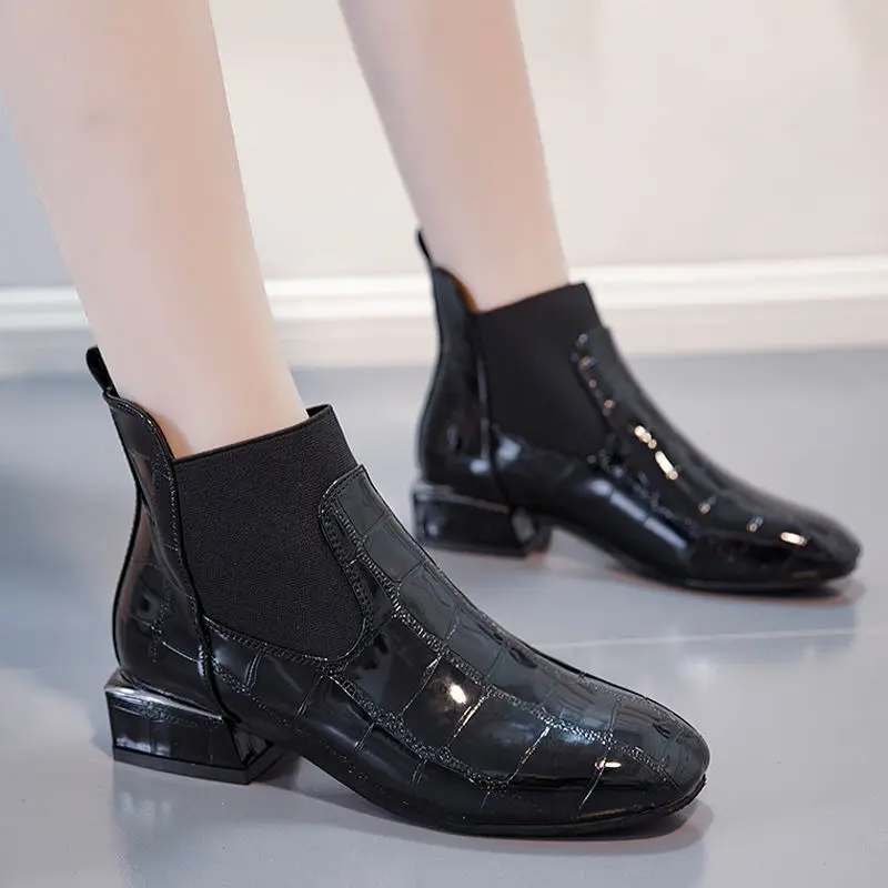 Ботинки женские из лакированной кожи, на низком каблуке, с острым носком, Осенние, 2021