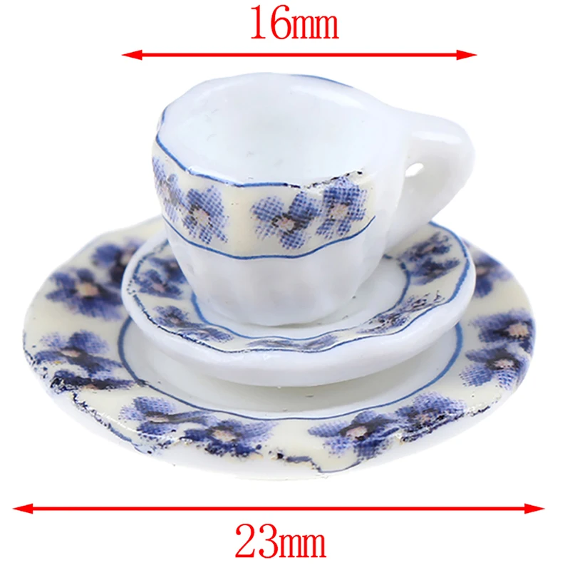 4 узора, 1:12, миниатюрный набор из 15 фарфоровых чашек для чая, чайный набор, Цветочная посуда, кухонный кукольный домик, мебель, игрушки для детей