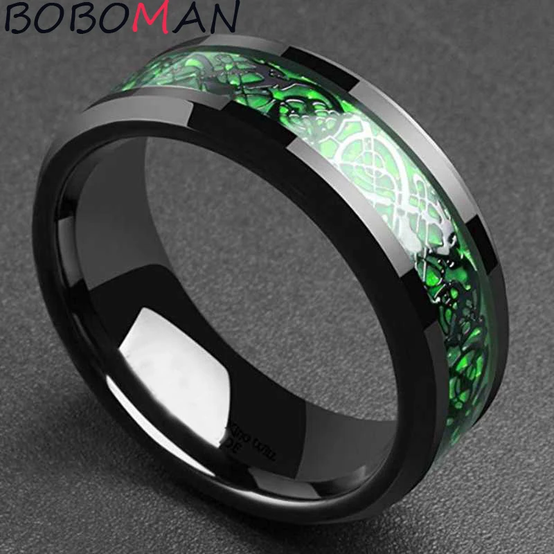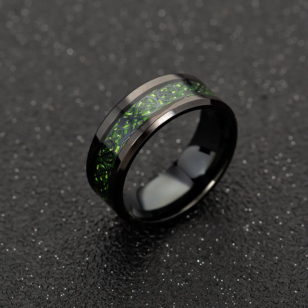Кольцо мужское, из углеродного волокна, с инкрустацией дракона
