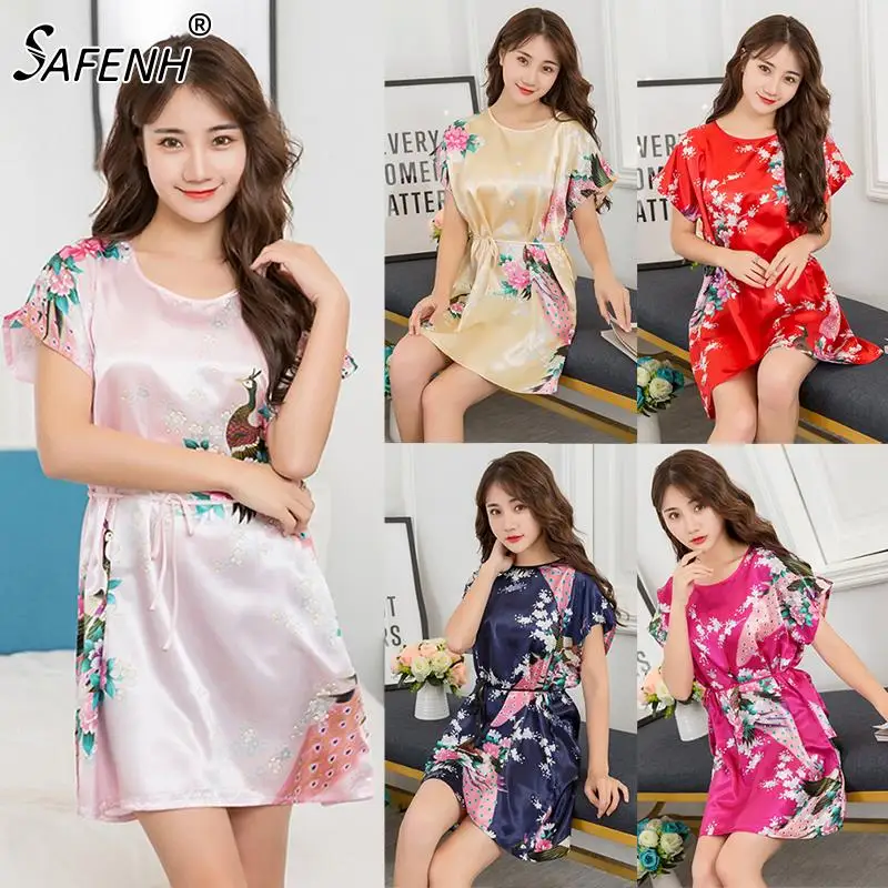 Ночная рубашка Женская атласная, шелк, цвет в ассортименте, ночная сорочка с короткими рукавами