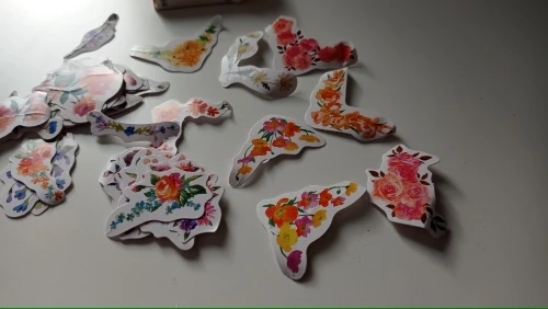 Они быстро прибыли. Продукт хорошего качества. Только несколько наклеек были сморщены. Из-за их различной формы может быть трудно поместить их обратно в коробку.