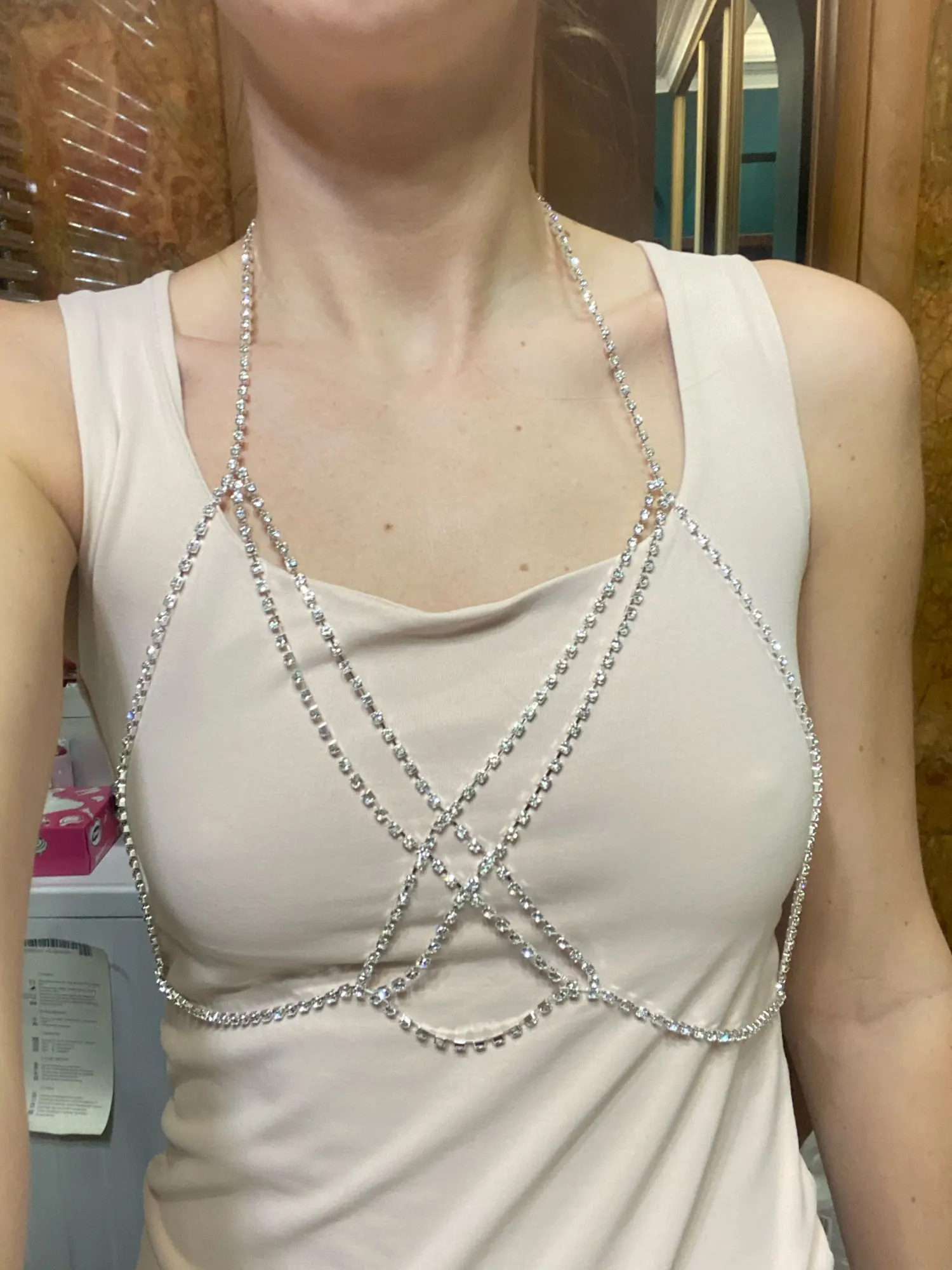 Цепочка на грудь женская, перекрестная, с кристаллами