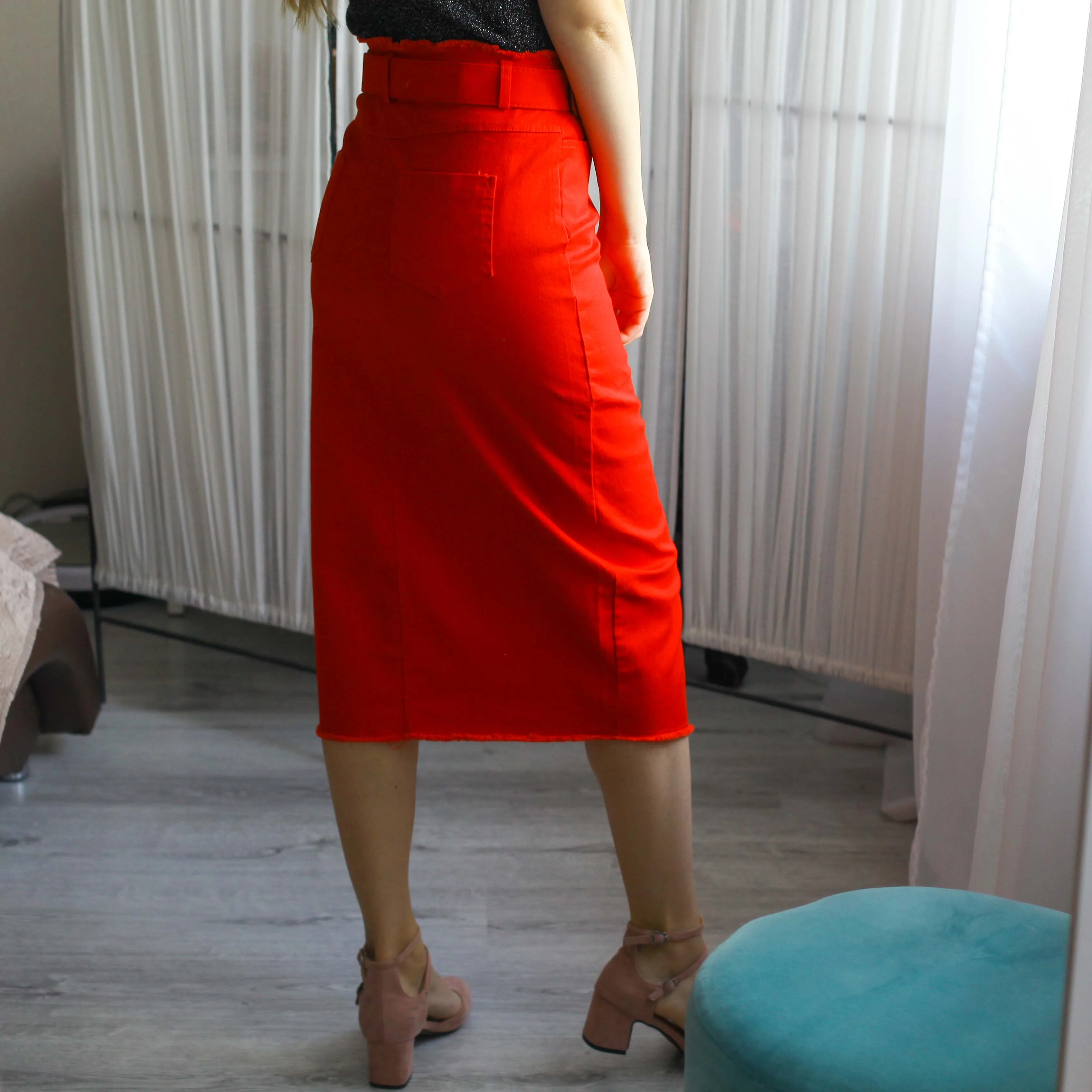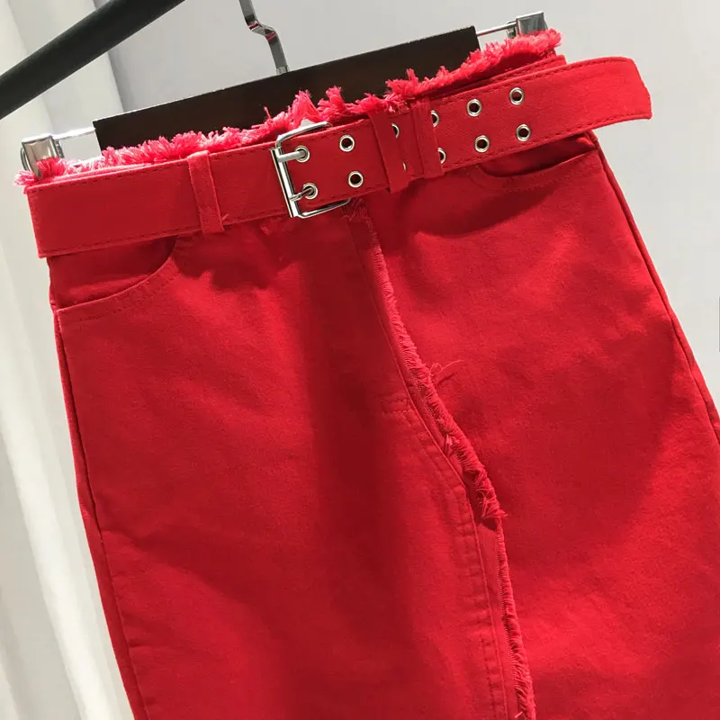 Юбка-карандаш Женская из денима, Повседневная Эластичная джинсовая юбка-карандаш с бахромой, красная черная зеленая, весна-лето