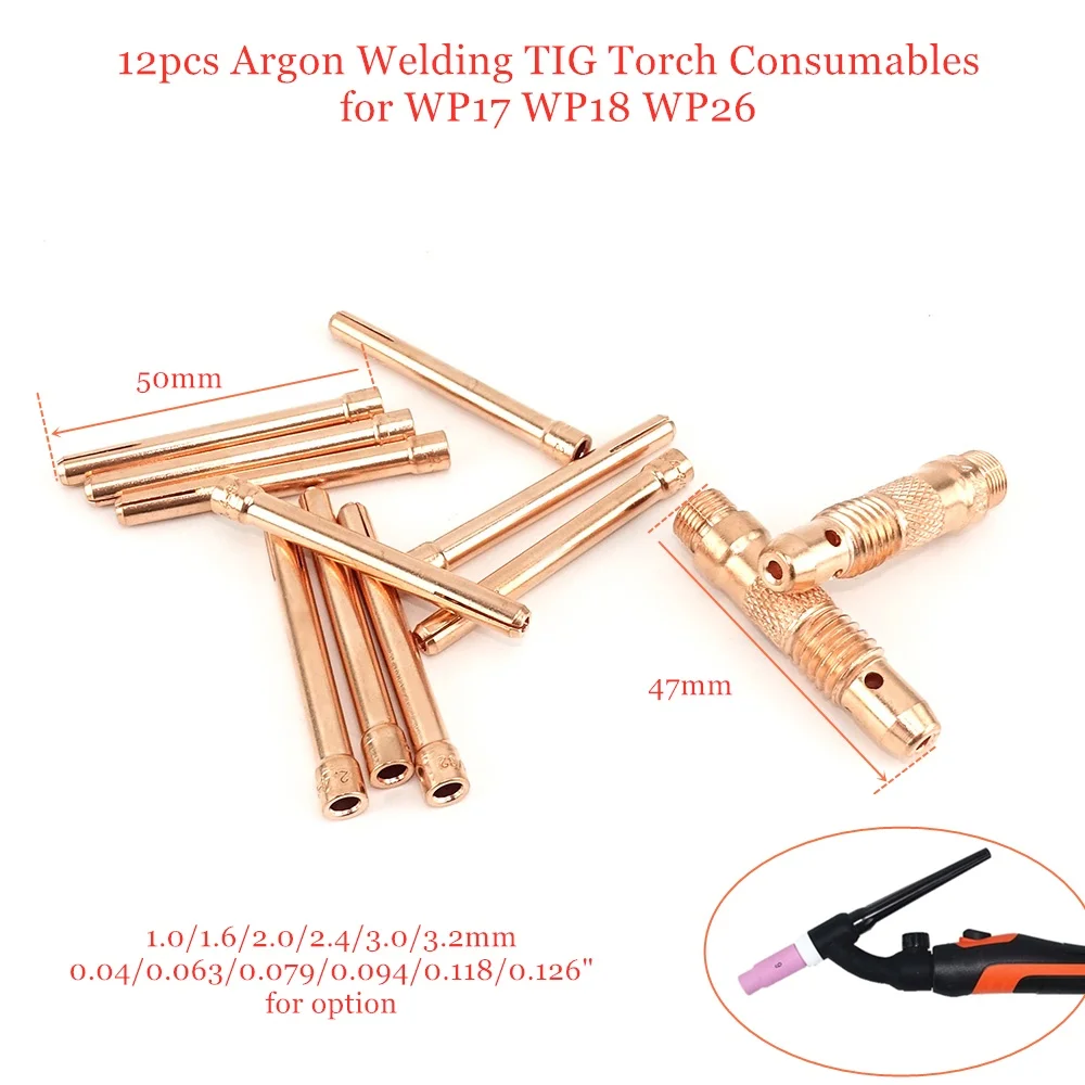 12 шт. WP26 аргоновый сварочный TIG фонарь, расходный материал 1,0 мм 1,6 мм 2,0 мм 2,4 мм 3,0 мм 3,2 мм TIG вольфрамовые электроды