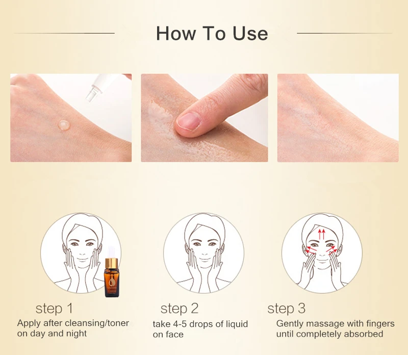 Как использовать:Нанесите на ночь после очищения/тонера, капните 4-5 капель жидкости на лицо и аккуратно массируйте пальцами до полного впитывания(Внимание: при использовании в течение дня, пожалуйста, сделайте защиту от ультрафиолета)