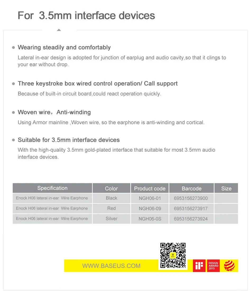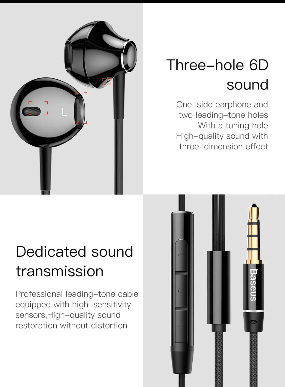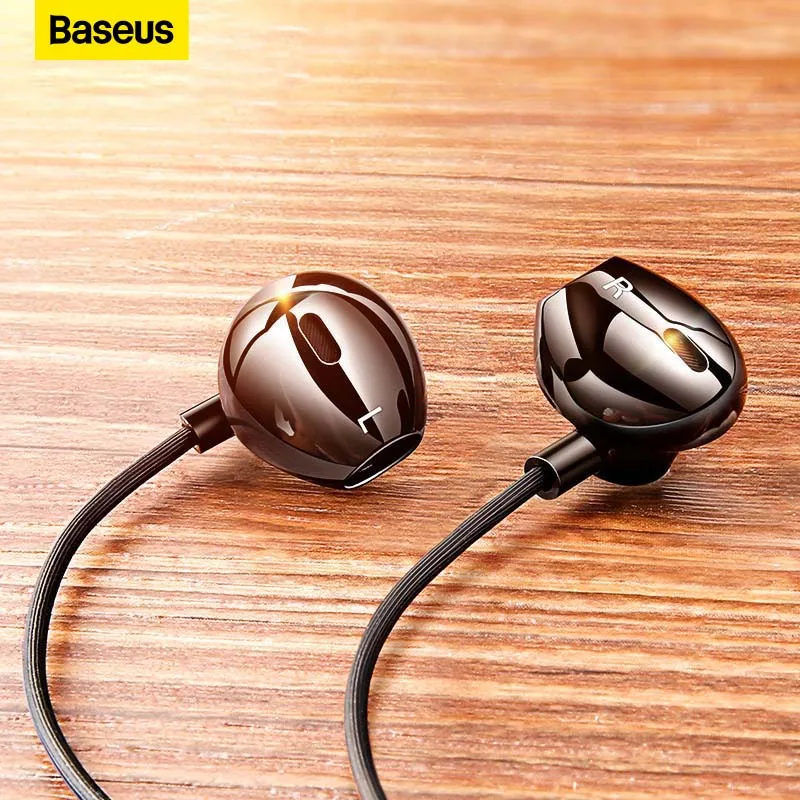 Baseus проводные наушники; Басовые стереонаушники; Наушники с микрофоном; Спортивная гарнитура; Разъем 3,5 мм; Для iPhone, Samsung; Проводные наушники