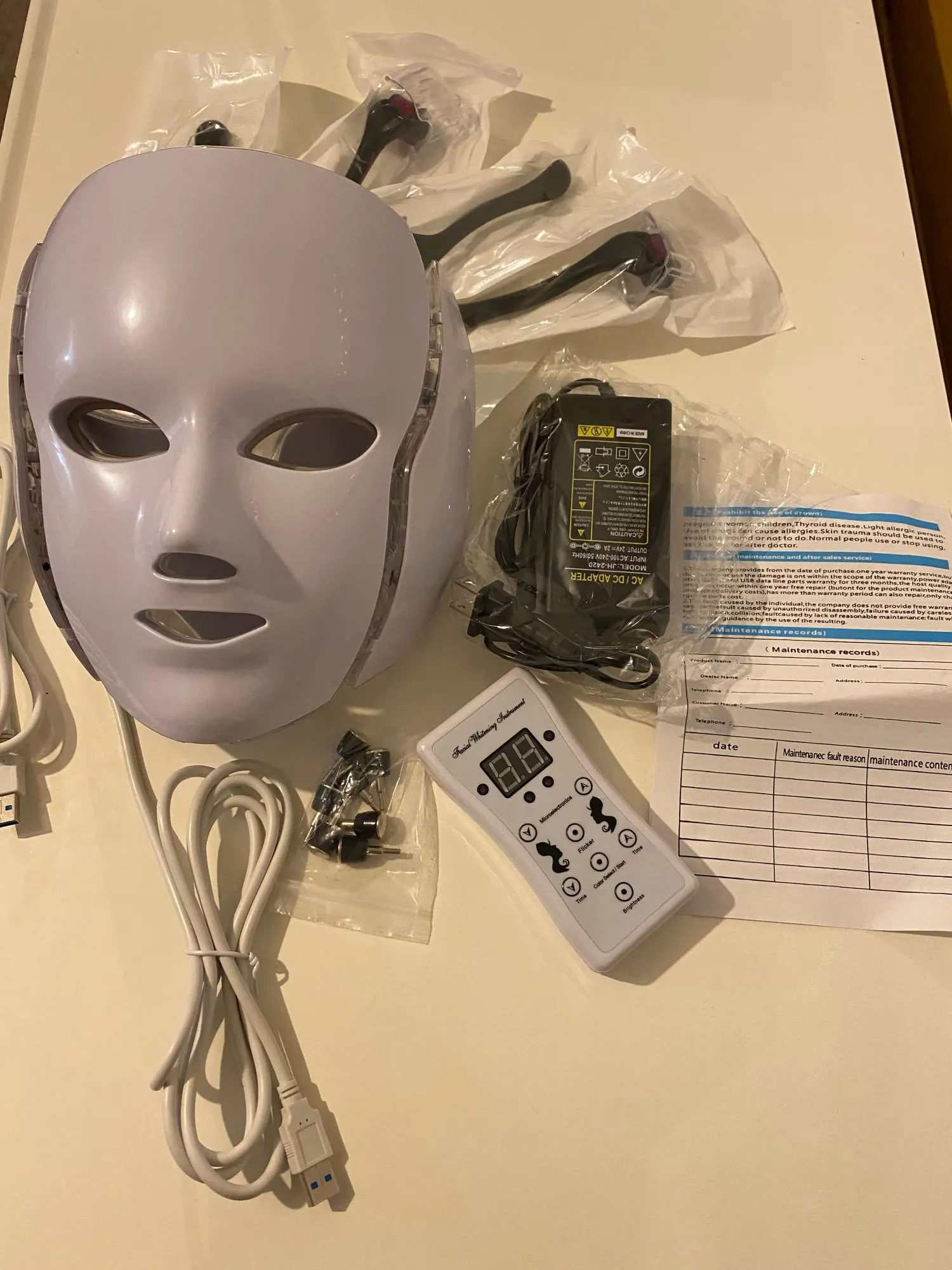 Пробовал сегодня, все огни работают, только одна проблема в проектировании: две булавки внутри маски, которые должны сидеть на лбу, повредили мою кожу, потому что маска тяжелая, силикон/мягкий пластик вокруг глаз не достаточно толстый и оставляет отметку давления вокруг глаз после 30 минут обработки. Я дал 5 звезд, моя кожа на ощупь отличается после лечения!